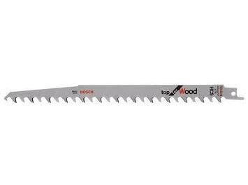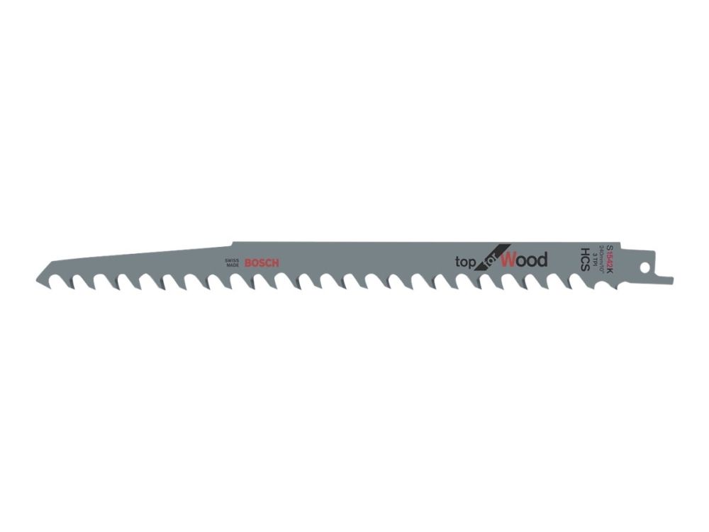 The S 1542 K Top for Wood reciprocating saw blade delivers powerful and fast cuts in wood. Its large tooth pitch (8.5 mm) and large gullets remove material quickly, enabling rapid cutting. Moreover, the blade's sharp-ground, side-set teeth cut efficiently for fast and powerful work, while its extra-thick gauge material (1.5 mm) provides ultimate stability for strong cuts. Made of HCS (high carbon steel), the reciprocating saw blade is appropriate for cutting soft wood, construction wood and all non-abrasive woodworking materials in construction applications. It has a long length of 240 mm, which enables a cutting capacity of up to 190 mm. For use with reciprocating saws with 1/2-inch universal shank systems.