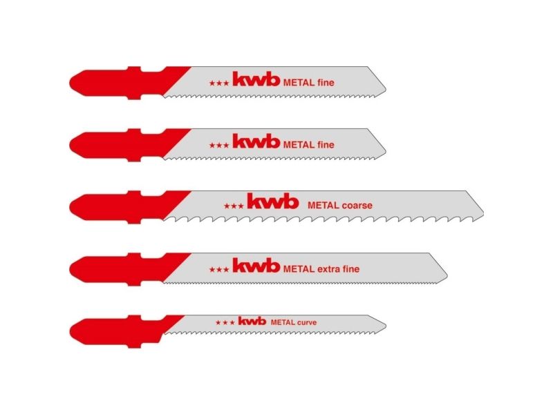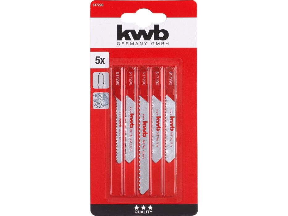kwb 617290, Figursågblad, Gjuten aluminium, Metallplåt, Snabbstål (HSS), Röd, Rostfritt stål, 5 styck, Blåsa