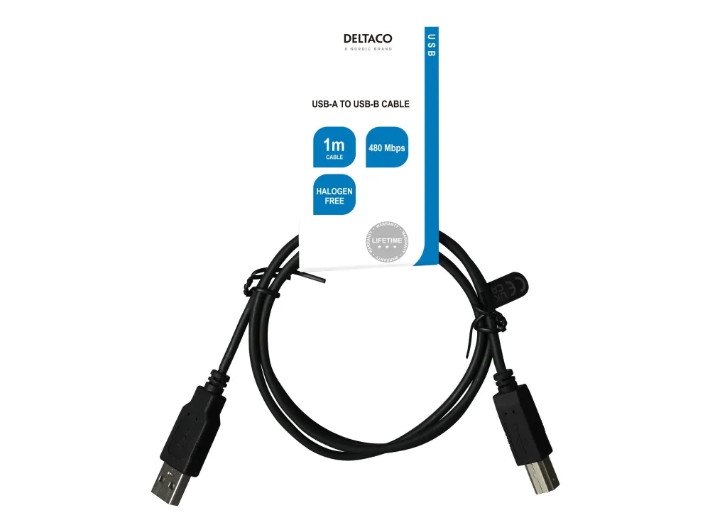 DELTACO - USB-kabel - USB (hane) till USB typ B (hane) - USB 2.0 - 1 m - svart
