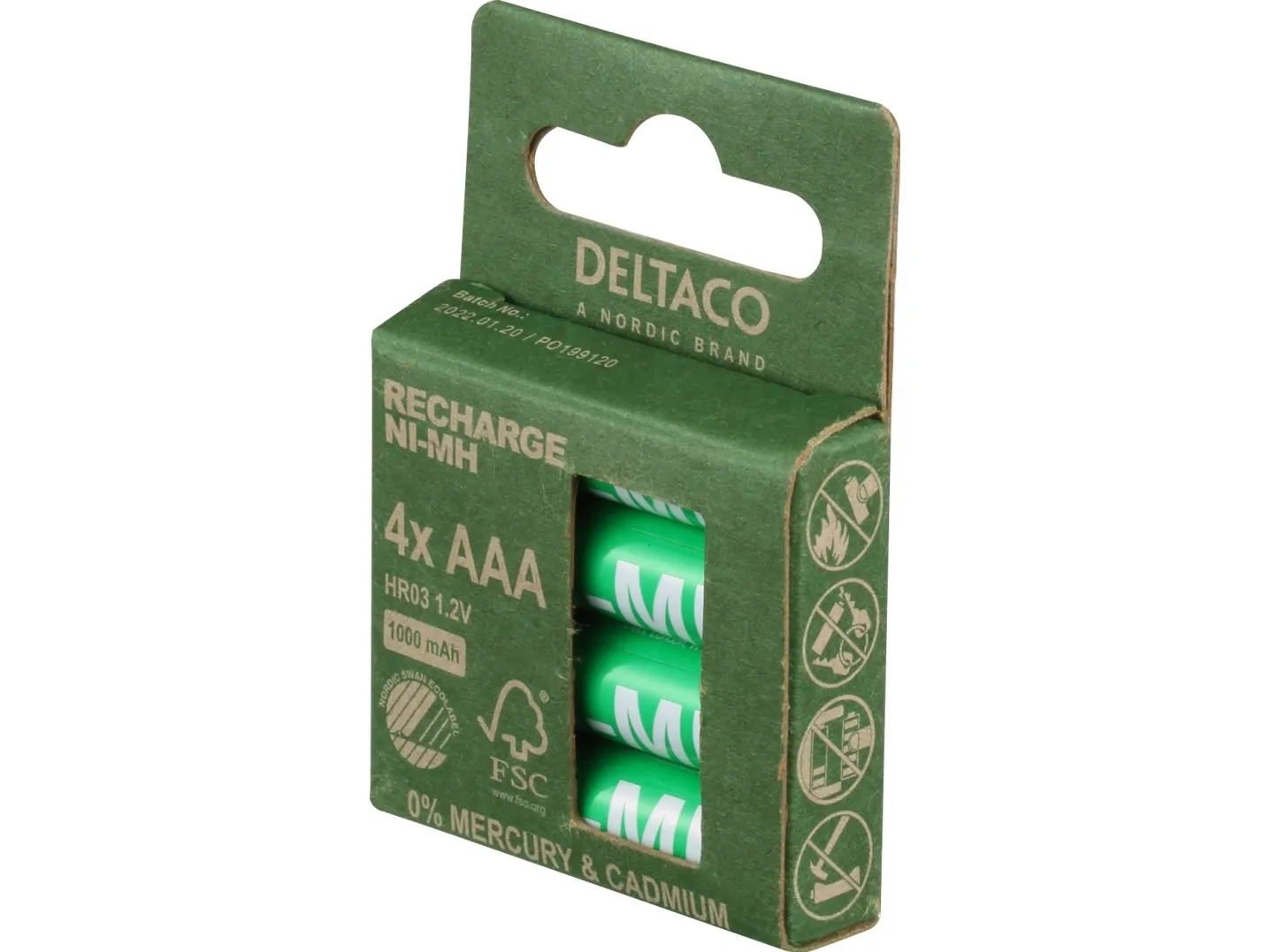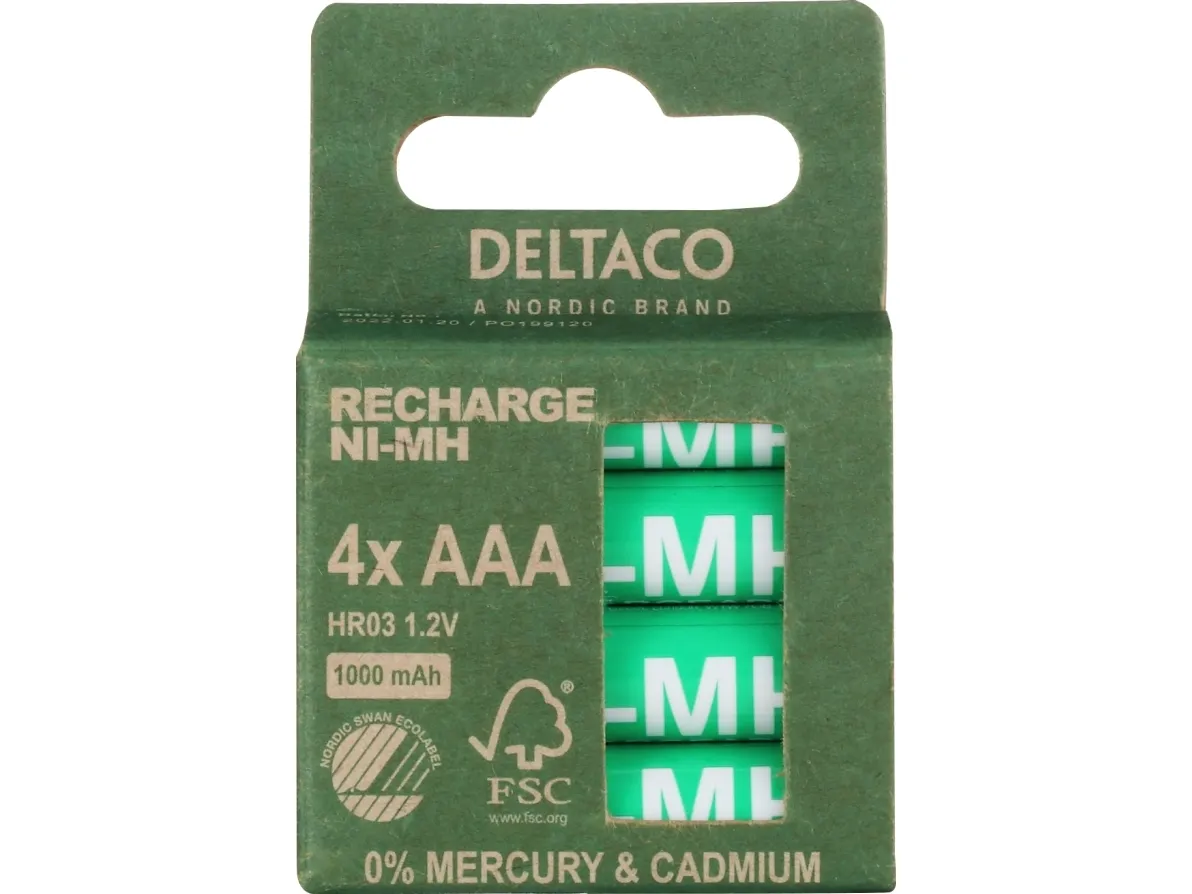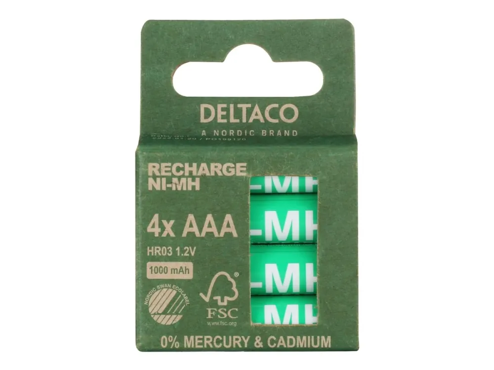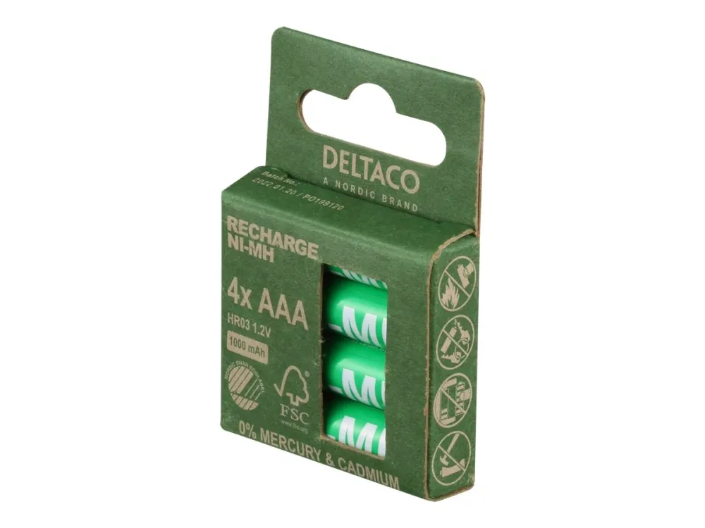DELTACO - Batteri - Svanen miljömärkning 4 x AAA / HR03 - NiMH - (uppladdningsbara) - 1000 mAh