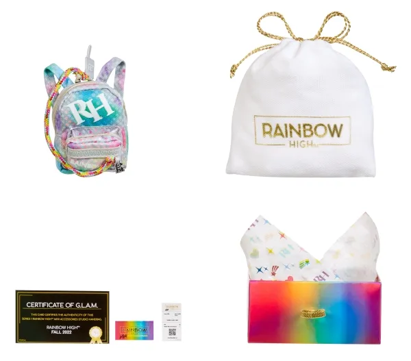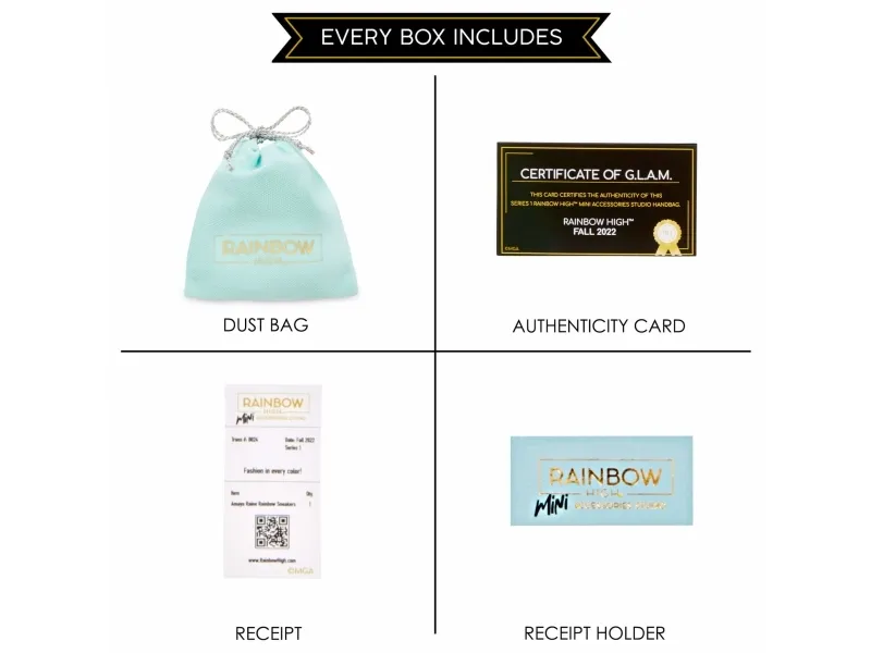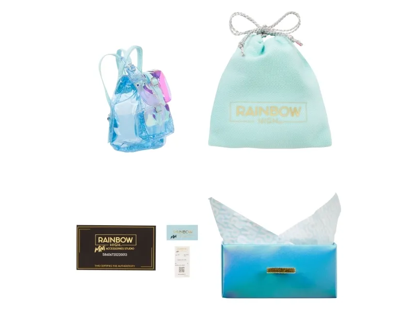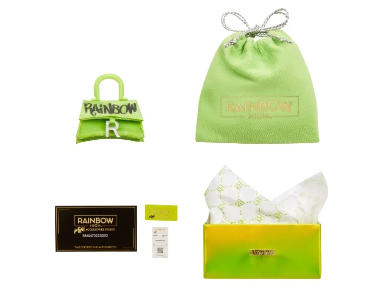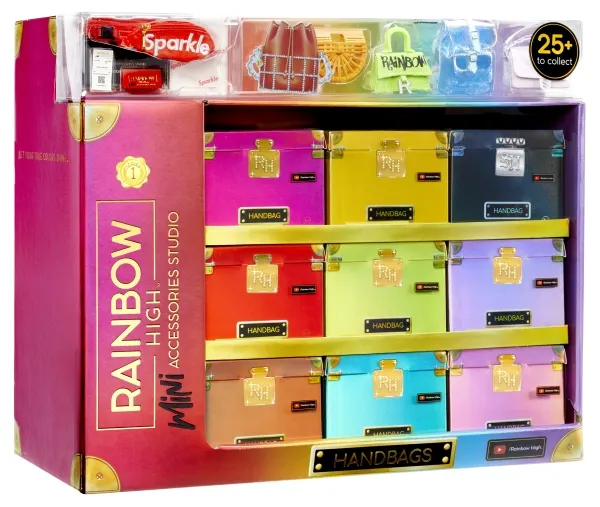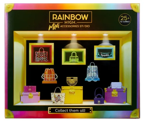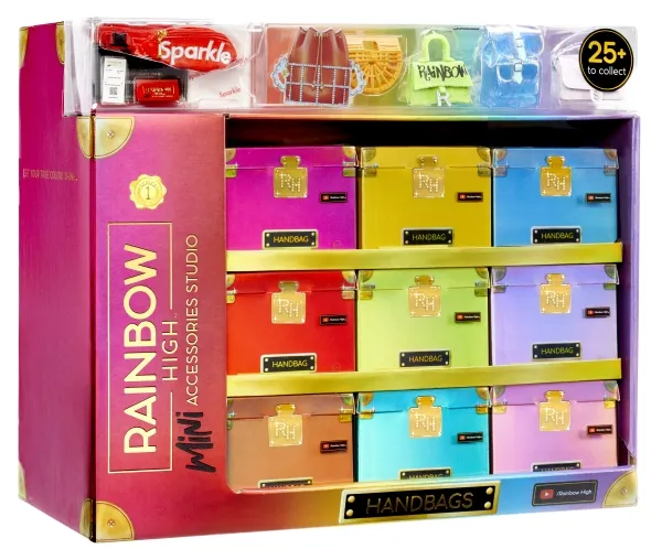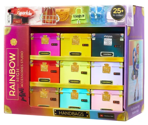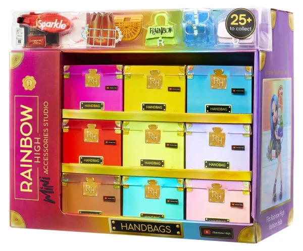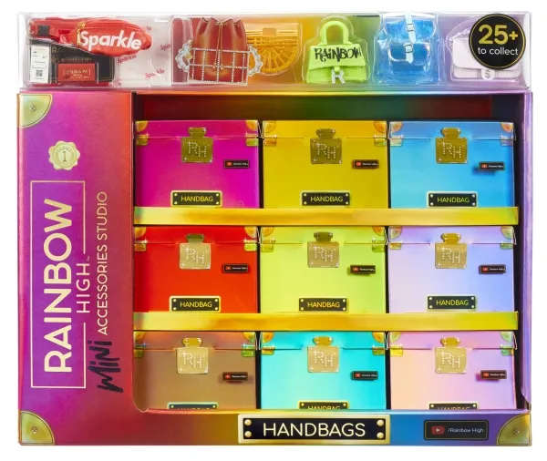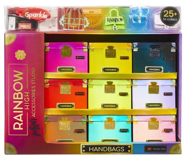 Introducing the first ever Rainbow High™ Mini Accessories Handbags collection. These are mini mystery collectibles, with 25+ fashionable styles to collect with rare & ultra-rare pieces. These handbags fit all Rainbow High™ fashion dolls and includes matching dust bags, receipts, authenticity card; so every child can have endless fun mix & matching, unboxing, and collecting.Rainbow High Accessories Studio Series 1, H Assortment in PDQ. Product type: Doll bag, Recommended age (min): 6 yr(s)