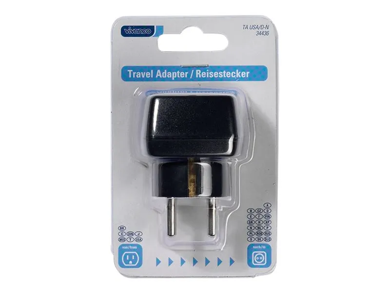 Vivanco TA USA/D-N - Adapter för effektkontakt - CEE 7/4 (P) till NEMA 5-15 (hane) - svart - Europa, Förenta Staterna