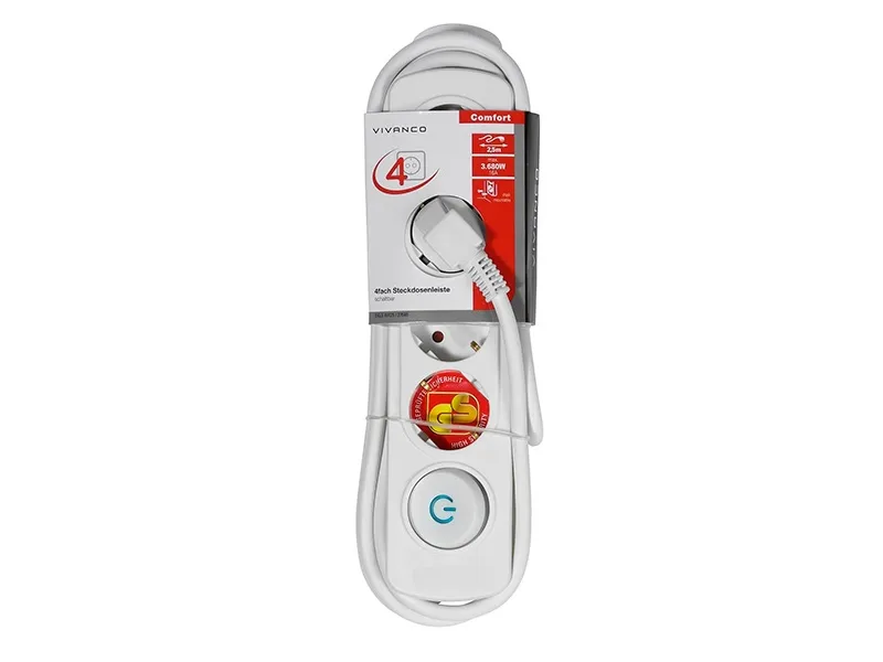 - 16A / 3.680W / 50HzVivanco 37645. Cable length: 2.5 m, Placement supported: Indoor, AC outlet types: Type C. AC outlets quantity: 4 AC outlet(s). AC input frequency: 50 Hz, Maximum input power: 3680 W, Maximum current: 16 A. Cable colour: White. Number of products included: 1 pc(s), Package type: Card
