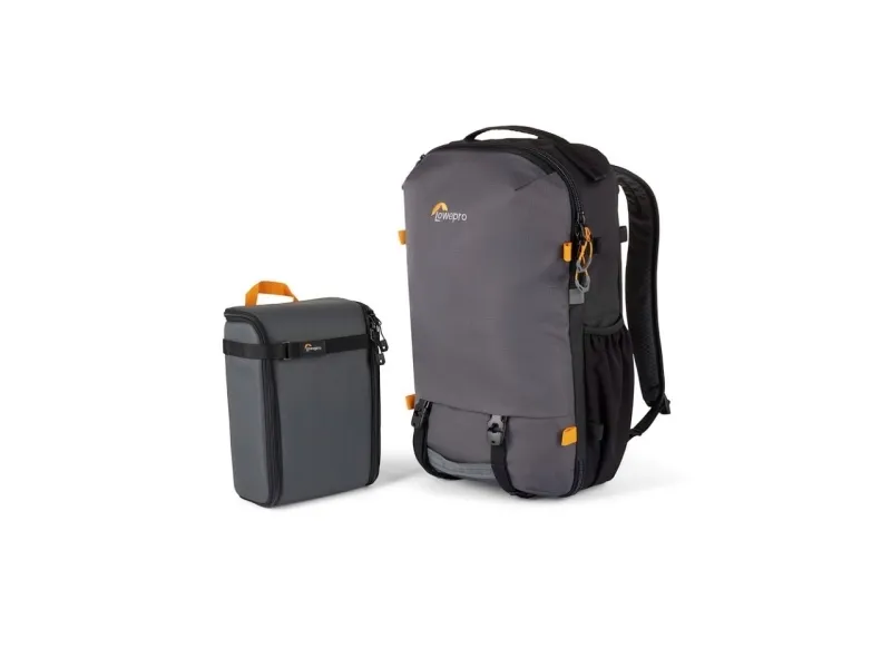 Carry your tripod in two different ways: Vertically on the front of the backpack, with the removable straps, or by using the stretch pocket on the side. The All Weather AW Cover protects gear from rain, snow and dust.Lowepro Trekker Lite. Case type: Backpack, Shoulder strap, Number of exterior pockets: 1, Product colour: Grey