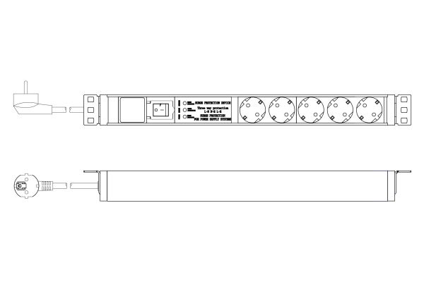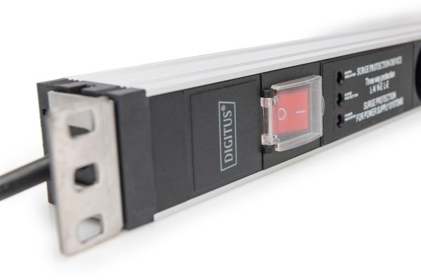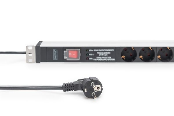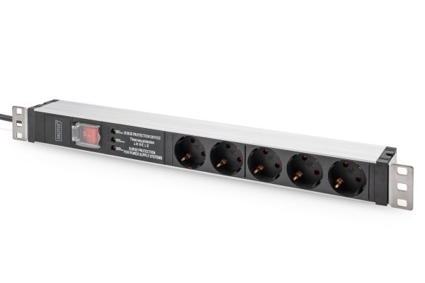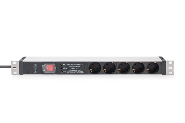 DIGITUS - Kraftdistributionsenhet (kan monteras i rack) - AC 230 V - 3600 VA - 1-fas - ingång: power CEE 7/7 - utgångskontakter: 5 (power CEE 7/3) - 1U - 19" - 2 m sladd