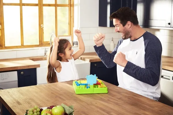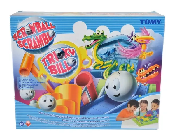 I en kortlek finns all den roliga och superspännande energin i Screwball Scramble, den klassiska utmaningen från TOMY Games. Börja med de 12 korten som utgör standardspelet och bygg din egen hinderbana, med startkortet i ena änden och målkortet i den andra. Lägg ut spåret till ett kortnät 4 x 3, som för standardspelet. När det är din tur slår du med tärningen - du måste matcha den kombination som visas på kortet för att gå framåt en ruta till nästa kort, och sedan till nästa. Till exempel kanske du slår 2 eller högre, eller slår två olika tal i tre slag. Om du inte kan det - trist. Då blir det din motspelares tur. Först till målet vinner. När du är klar kan du använda hela kortleken där färdighetskort lägger till eller drar ifrån ett eller två poäng till ditt slag - eller överraska din motståndare genom att ändra hens: I 1-ON-1 slåss två spelare på en freestyle-bana, eller EXTREME, är spelvarianten där varje spelare utformar sin egen bana! Hur som helst är det en Screwball Scramble från start till mål!