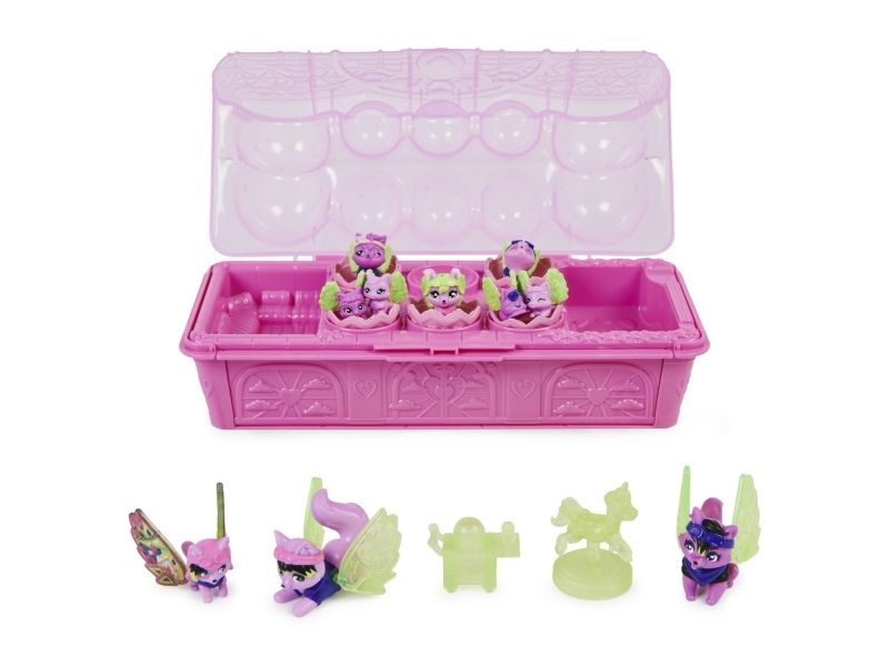 Skapa dina egna Hatchimals syskonsemesteräventyr med Hatchimals CollEGGtibles Sibling Luv Pack. Varje Rainbow-cation Hatchimals-familj har sitt eget unika utseende och tema, inspirerade av deras favoritaktiviteter på semestern. Upptäck nio nya familjer, inklusive Wolf Bikers, Koala Campers, Llama Florists, Luau Leopards, Sparkling Poodles, Cat Dancers, Dog Pilots, ovanliga Ice Skating Penguins och superovanliga Unicorn Hair Stylists - allihop är så söta. Sibling Luv Pack är det perfekta sättet att börja bygga dina Rainbow-cation Hatchimals-familjer. Varje paket innehåller ett nytt Hatchimals-ägg, fullt av roliga överraskningar: en Big Kid, en Baby, ett par vingar för Big Kid, en riktig tygfilt och en återanvändbar äggbas. Det är en överraskning vilket Hatchimals-syskon du får. Kläck ägget och hitta Big Kid, dess färgglada vingar och filten, dra sedan av klistermärket på äggbasen och träffa ditt pakets gulliga Baby. Äggbasen blir ett tillbehör att använda i din låtsaslek och historieberättande. Varje äggbas har en särskild utformning och varje filt har tryck med en semesterscen som är unik för dina syskon - en picknick, strand, skridskorink och mer. Fäst enkelt vingarna på Big Kid och lek oändliga syskon-semesteräventyr. Med över 60 nya Rainbow-cation Hatchimals och 10 Sibling Luv Packs att samla på (vart och ett säljs separat), samla alla de nio Hatchimals-familjerna. Hatchimals CollEGGtibles överraskningsleksaker för flickor är perfekta till barn som tycker om söta samlarfigurer, action-figurer, dockor och småleksaker. De är perfekta födelsedagspresenter till barn, julklappar, småpresenter till påsk och mer. Åk på Rainbow-cation med Hatchimals CollEGGtibles Sibling Luv Pack.