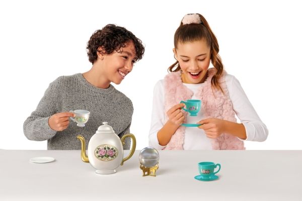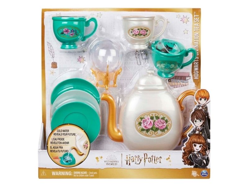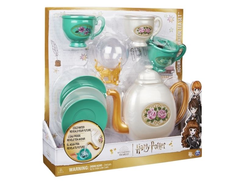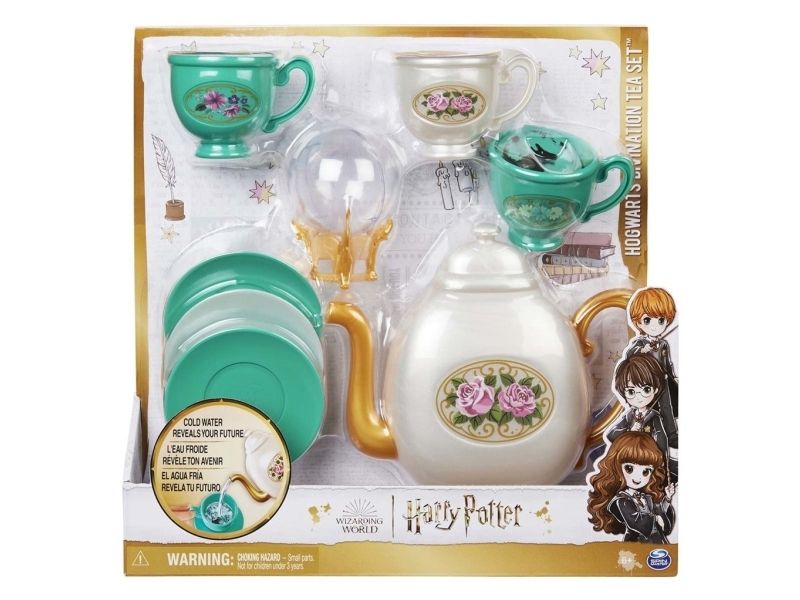 Avslöja din framtid med Wizarding World Hogwarts Divination Tea Set. Med tekanna, tre tekoppar, tre tefat och en kristallkula kan unga häxor, trollkarlar och mugglare uppleva magin i Harry Potter med denna roliga leksak. Fyll tekoppen med is och kallt vatten och läs i tebladen, precis som Hogwarts-eleverna gör i filmerna. Hur kommer din framtid att bli? Häll vatten i en tekopp och be en vän spå din framtid. En symbol visar sig magiskt när du häller vatten i en av tekopparna. Det kalla vattnet avslöjar en av tre möjliga spådomar, till exempel solen för mer lycka, ett hjärta för kärlek och The Grim. När du är klar fortsätter du att förfina dina Divination-färdigheter och öva genom att titta i kristallkulan. Hogwarts rollek Divination Tea Set kommer att inspirera din fantasi genom rolig och spännande låtsaslek. När du är klar torkar du setet noga till nästa gång. För fler sätt att utöka din Wizarding World-samling, leta efter Spellbinding Harry Potter Wands, 20,3 cm modedockor och Magical Minis Harry Potter-dockor och -lekset (var och en säljs separat). Wizarding World Harry Potter-leksaker är måste-presenter till barn som tycker om samlarleksaker, trollstavar, action-figurer, dockor och docktillbehör. De är fantastiska som födelsedagspresent, julklapp eller småpresenter. Återskapa dina favoritscener från Divination-klassrummet med Wizarding World Hogwarts Divination Tea Set.