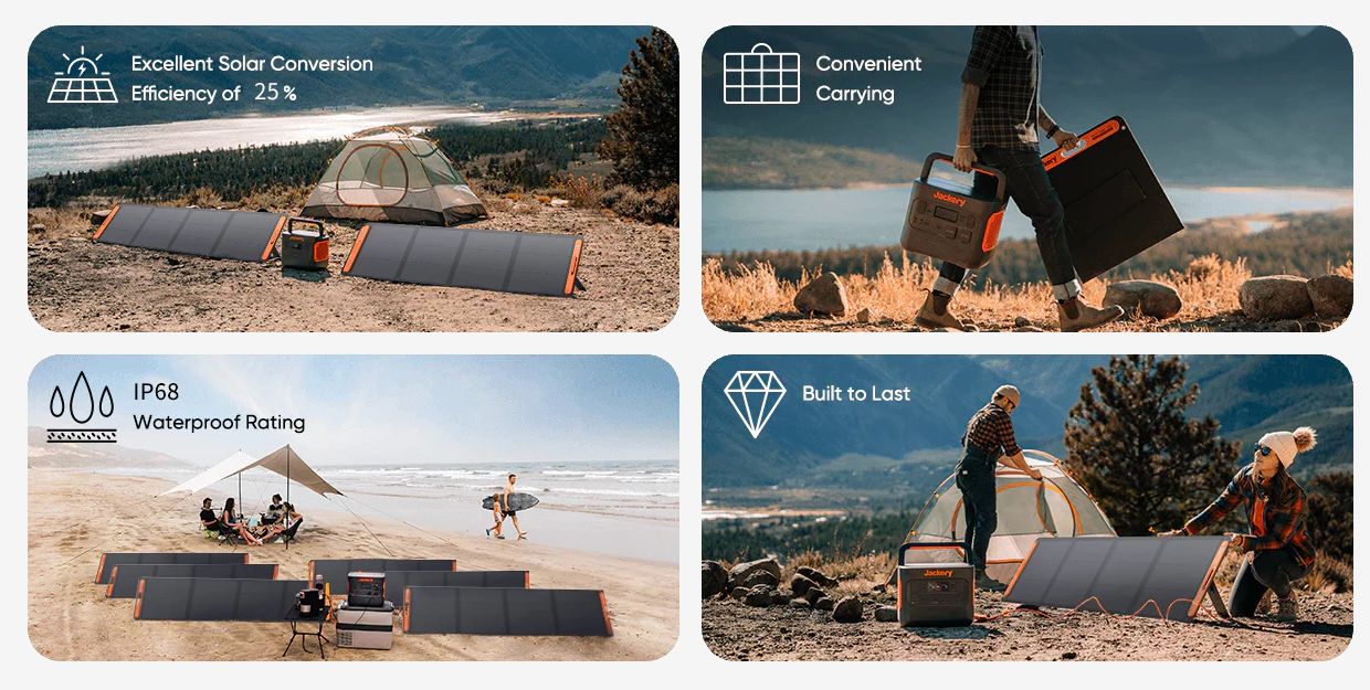 Jackery SolarSaga 200W solpanel har en hög solkonverteringseffektivitet på upp till 25% – kom snabbt igång med grön energi. Det ETFE-laminerade höljet förlänger livslängden, och den rekommenderade vinkeln säkerställer optimal absorption av solljus, vilket gör den till den perfekta strömkällan för utomhusresor och reservkraft i hemmet. Den är portabel, hopfällbar och kan anslutas direkt till en powerstation för det perfekta solenergisystemet.