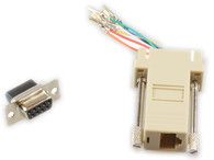 D-sub Connector to RJ-12 / RJ-45 female Connector adapter in one housing. The wiring at the RJ-12 / RJ-45 female side is fixed, but the wire-ends have crimp contacts, which could be placed in the desired position of the D-sub connector without any tools.Housing has locking screws for firmly attaching the D-sub end.