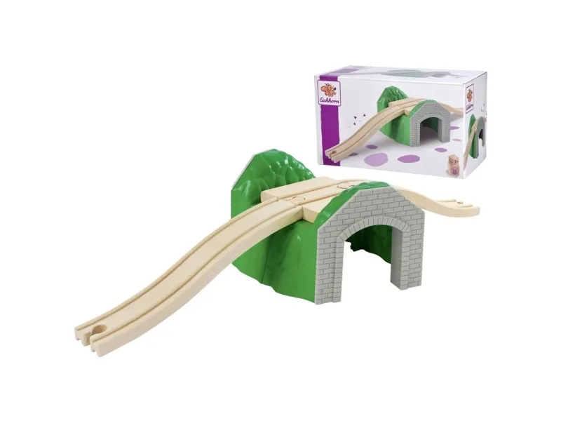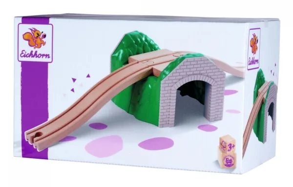 Eichhorn bane, tunnel: Eichhorn Tunnel er et fantastisk supplement til jernbaner. Tunnelen giver mulighed for at rejse gennem og over tog. Eichhorn skinnebahn fremstilles udelukkende af FSC® 100 % træ fra bæredygtigt skovbrug. Den kan kombineres med næsten alle jernbaner. Beregnet til børn fra 3 år!