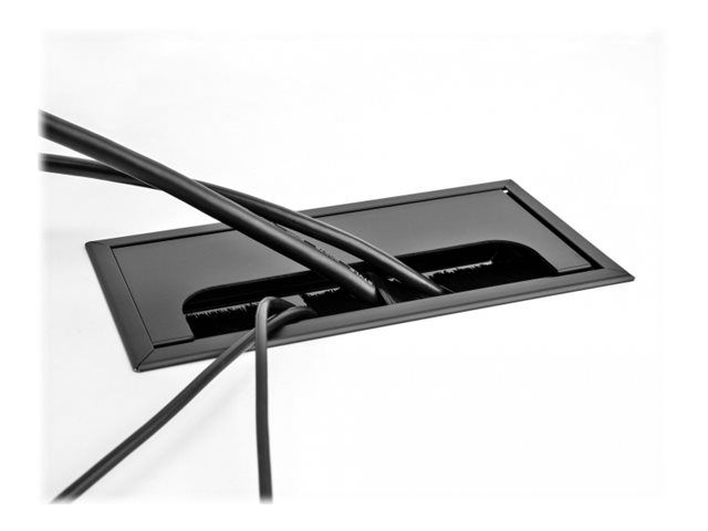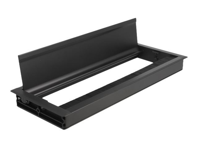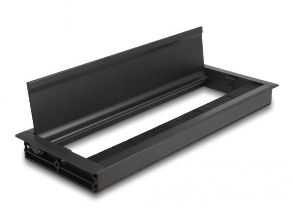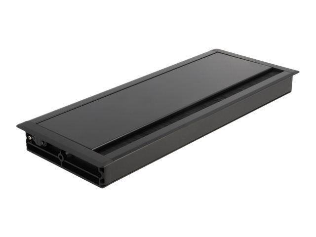 This cable grommet by Delock with brush and hinged cover is ideal for table mounting to pass cables through. The nylon brush prevents dust and dirt from getting in and ensures a safe cable passage.