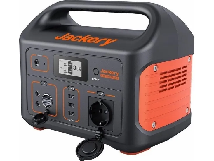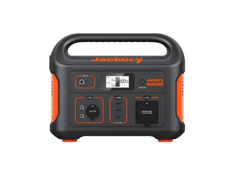 Jackery Explorer 500. Battery technology: Lithium-Ion (Li-Ion), Battery capacity: 24000 mAh, Charging source: AC, Solar. Product colour: Black, Orange, Display type: LCD, Control type: Buttons. AC outlets quantity: 1 AC outlet(s). Width: 301 mm, Depth: 193 mm, Height: 242 mm. Cables included: AC
