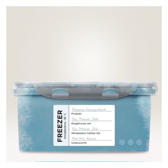 Etiketterne er fremstillet i kuldebestandigt papir med stærk klæbeevne. De kan endda påklistres overflader med let rimfrost og kan modstå direkte kontakt med tørre ikke-fedtholdige fødevarer. Den laveste påføringstemperatur er -20°C, og brugstemperatur fra -50°C til +70°C.