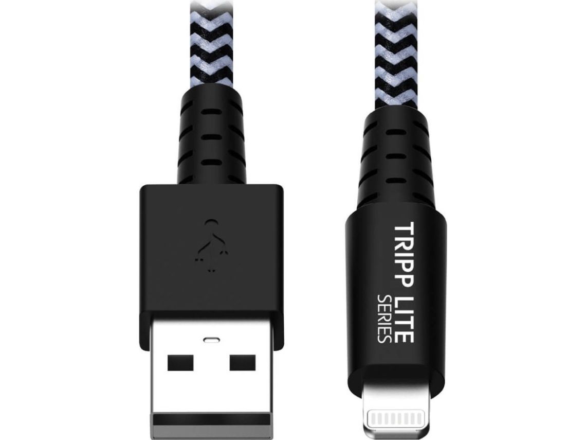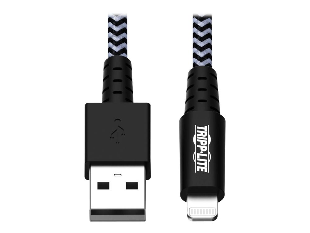 Eaton Tripp Lite Series Heavy-Duty USB-A to Lightning Sync/Charge Cable, MFi Certified - M/M, USB 2.0, 3 ft. (0.91 m) - Lightning-kabel - USB hane till Lightning hane - 90 cm - svart, vit
