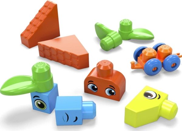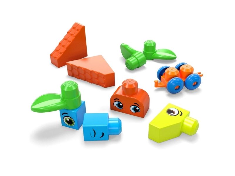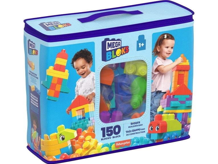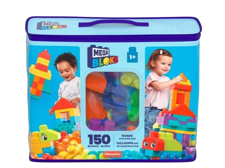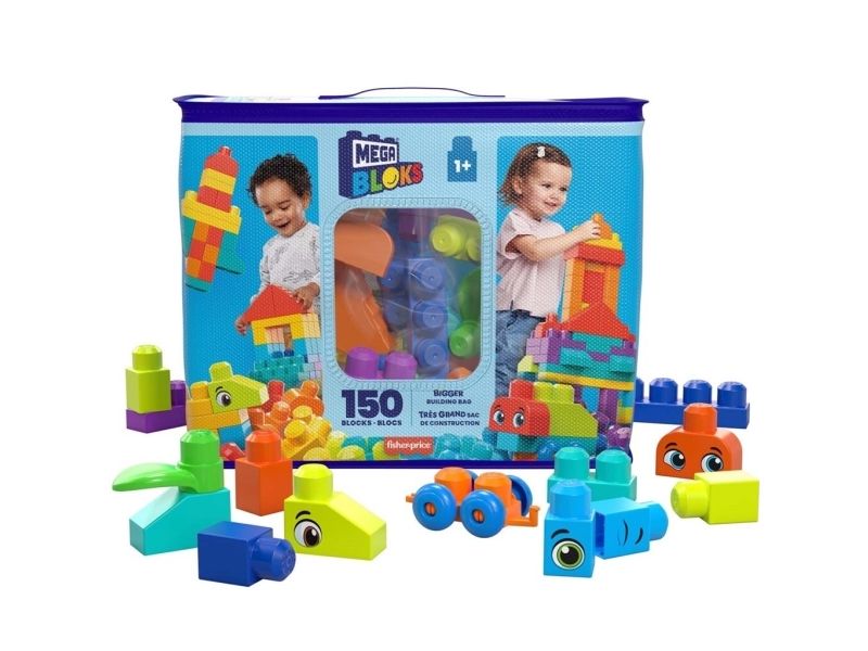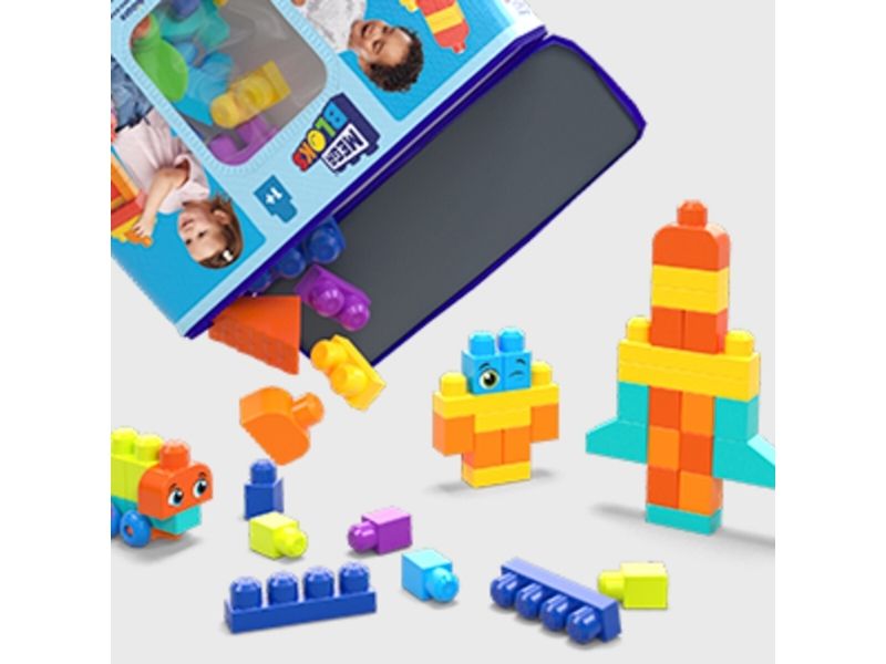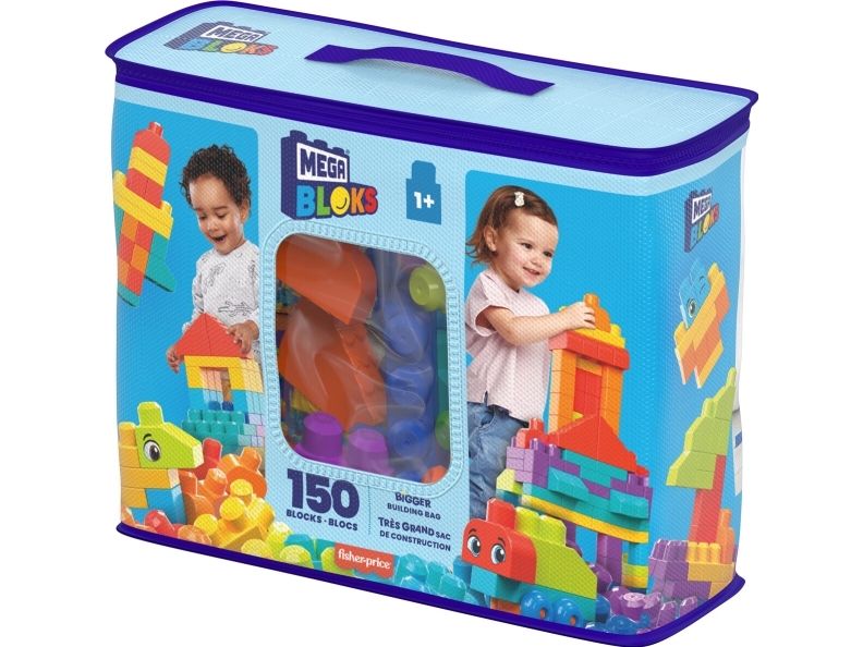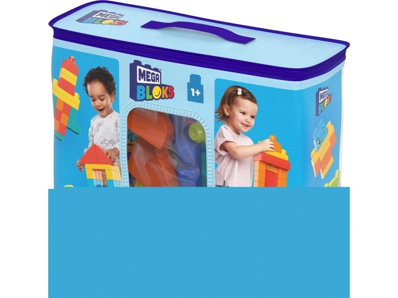 Produktbeskrivning: Släpp loss den lilla byggarens fantasi med den större byggväskan, fylld med 150 stora och färgglada byggklossar och specialdelar som klossar dekorerade med ögon, lövklossar, takklossar och 1 hjulbas. Klossarna är greppvänliga och enkla att stapla för att barnet ska kunna utveckla sin finmotorik, kreativitet och fantasi. Klossarna förvaras smidigt i den återanvändbara väskan när barnet har lekt klart.