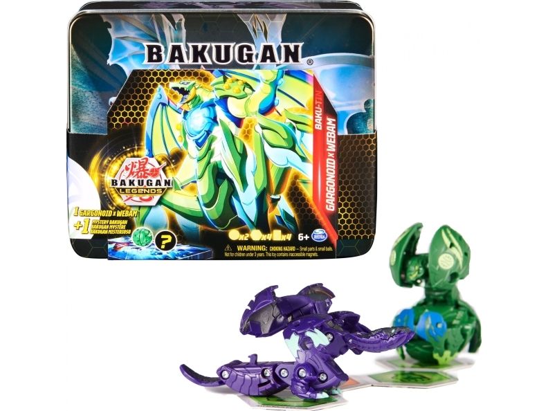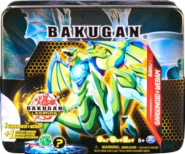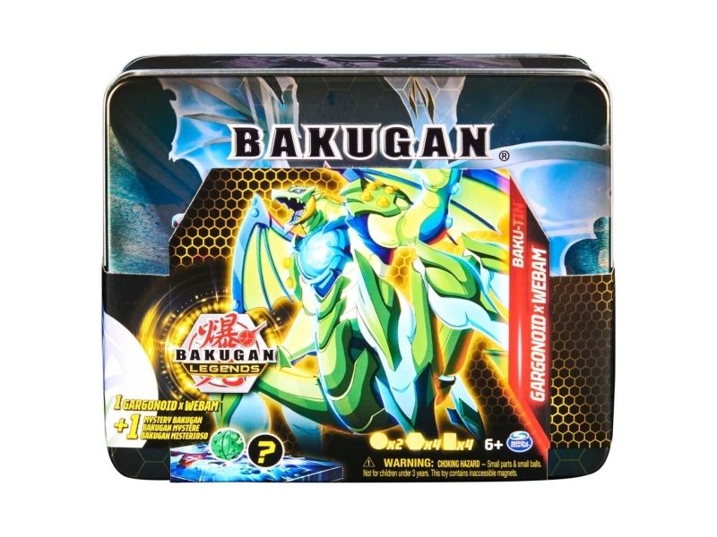 Förvara din Bakugan-samling i stil i en Baku-tin. Denna exklusiva förvaringslåda i metall har häftig Bakugan-grafik och kommer med Gargonoid X Webam och en hemlig Bakugan. Du kommer inte att få veta vilken Bakugan-karaktär som finns inuti förrän du öppnar din låda. Ta av locket för att hitta din Bakugan och upptäck två lager med förvaringsutrymme som får plats med allt du behöver för att strida. Denna Baku-tin innehåller 2 Bakugan, 4 BakuCores och 2 karaktärskort så att du kan kickstarta din samling. Det finns plats inuti för upp till sex Bakugan, två kortlekar à 40 kort och 12 BakuCores från din samling (alla säljs separat). Med Bakugan-lådan blir det enkelt att visa upp din Bakugan-samling eller att ta den med dig för strider på språng. Du kan dessutom använda locket för att aktivera dina Bakugan – rulla bara dina karaktärer över locket för att öppna upp till Baku-Action. Lägg till alla Bakugan Legends-leksaker för flickor och pojkar från säsong 5 till din samling, inklusive Geogan och Nova Bakugan som lyser (alla säljs separat), för att bygga ihop ditt drömlag med Bakugan Battle Brawlers och kort. Samla på alla dina favoritkaraktärer från succéserien (på NETFLIX) och gå med i Bakugan-kampen med dina favoritsamlarobjekt och actionfigurset. Är du redo att bli en Bakugan Legend? Denna Baku-tin är det perfekta samlarobjektet för Bakugan-fans och är ett måste i din samling. Ta hem den ultimata förvaringen till din Bakugan-samling.