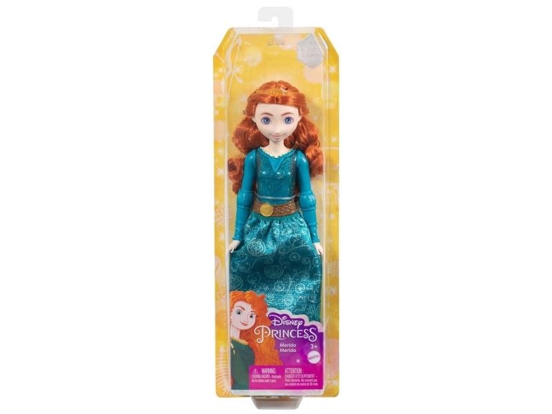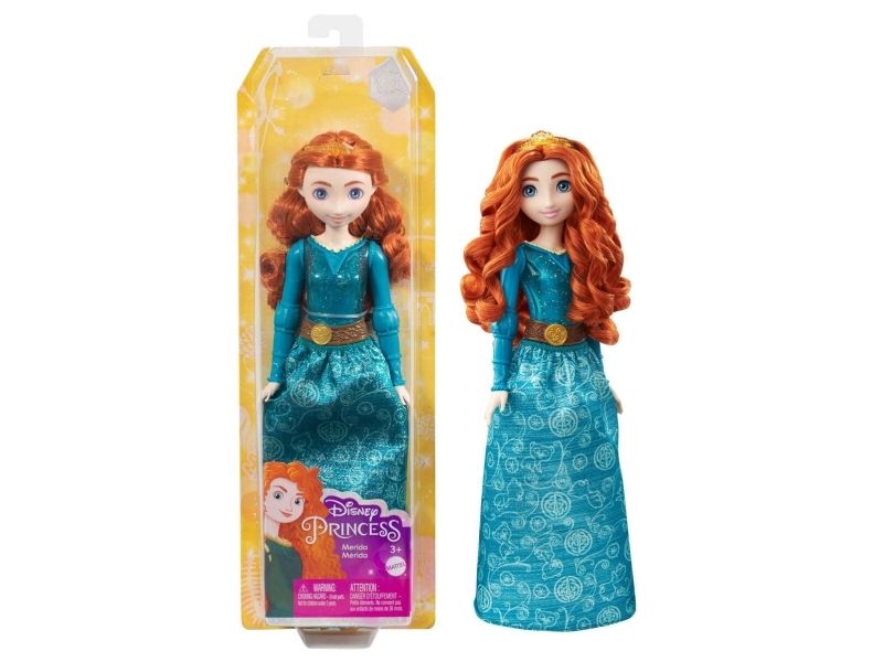 Möt Merida-dockan, inspirerad av den självsäkra och lojala prinsessan från Disney och Pixars Modig! Den här poserbara modedockan är klädd i en glittrig outfit och accessoarer som skor och tiara. Merida-dockan ser ut precis som i filmen och är redo för alla äventyr! Dockan kan inte stå utan hjälp. Färger och dekorationer kan variera.