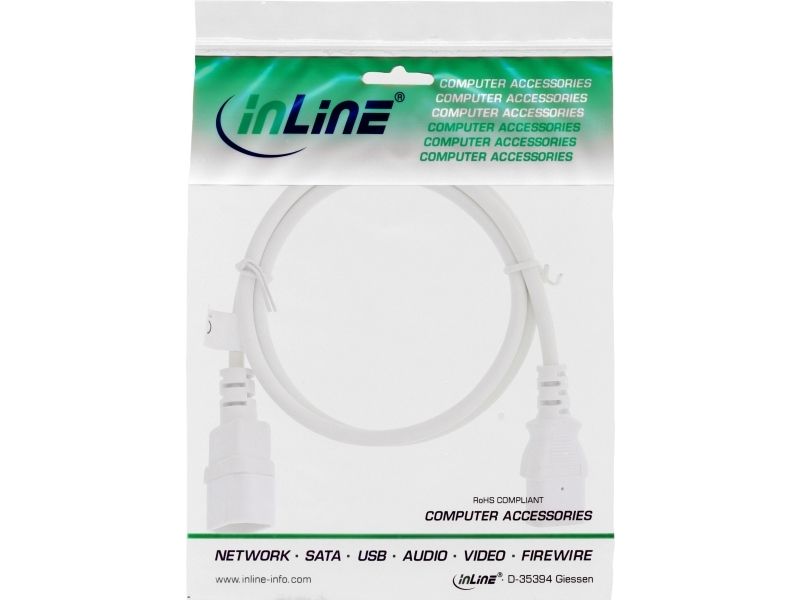 Nätkabel InLine förlängningskabel C13 till C14 vit 1,5 m
