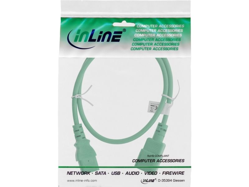 InLine förlängningskabel för ström InLine® C13 till C14, grön, 0,75 m