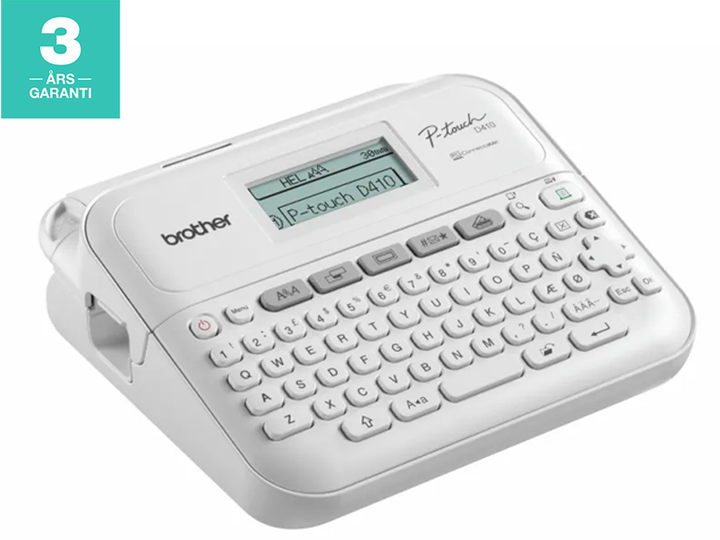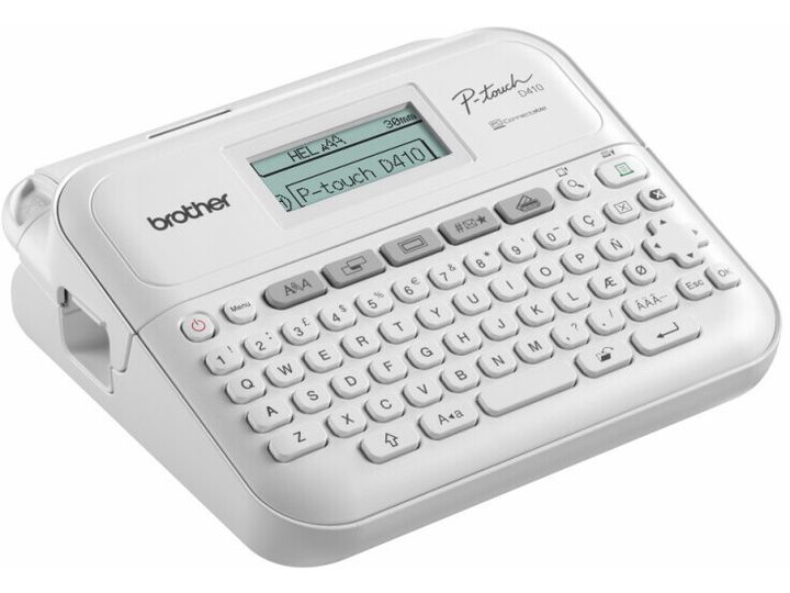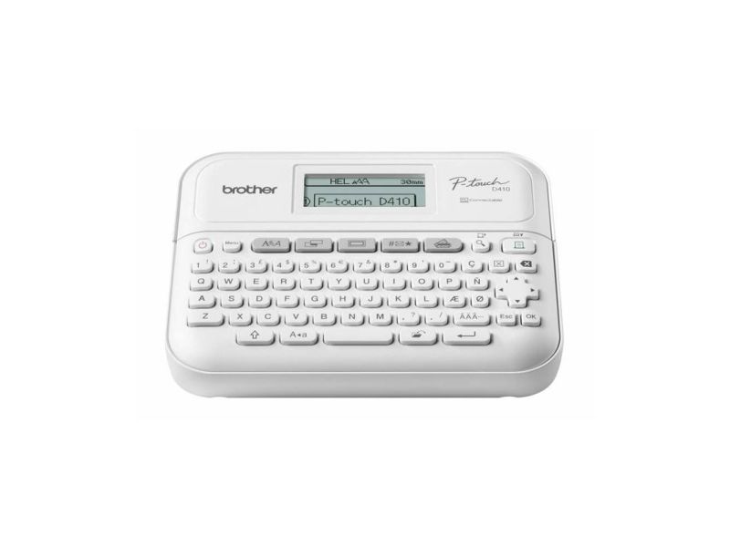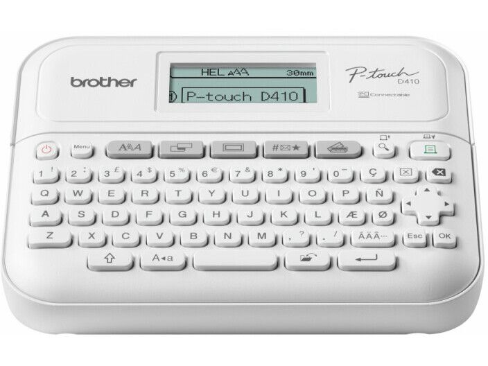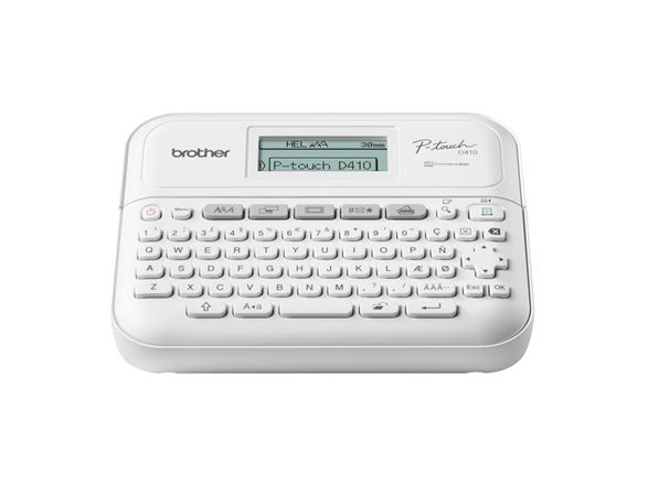 Förvandla ditt hemmakontor med en professionell märkmaskin från Brother. PT-D410-modellen erbjuder en kompakt, lättanvänd märkmaskin som skriver ut skarpa, laminerade etiketter som hjälper dig att anpassa dina viktiga filer och mappar, identifiera utrustning och kablar för hemmakontoret och organisera dina förvaringslådor. Skriver ut etiketter med en bredd på upp till 18 mm, kompatibla med Brothers hållbara Tze-band som tål vatten, nötning, kemikalier och extrema temperaturer. Skapa anpassade etiketter genom att lägga till logotyper, symboler och streckkoder med hjälp av Brothers programvarulösning för etikettdesign-P-touch Editor. Anslut enkelt märkmaskinen till datorn med skrivarens USB-anslutning.