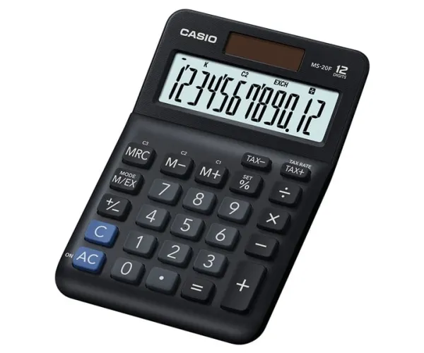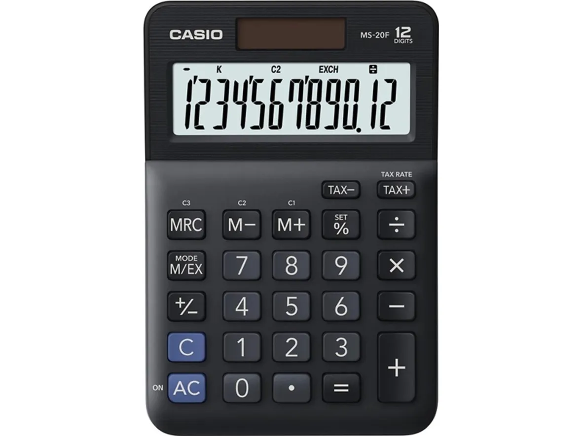 Casio MS-20F, Skrivbord, Grundläggande, 12 siffror, Batteri/solcell, Svart