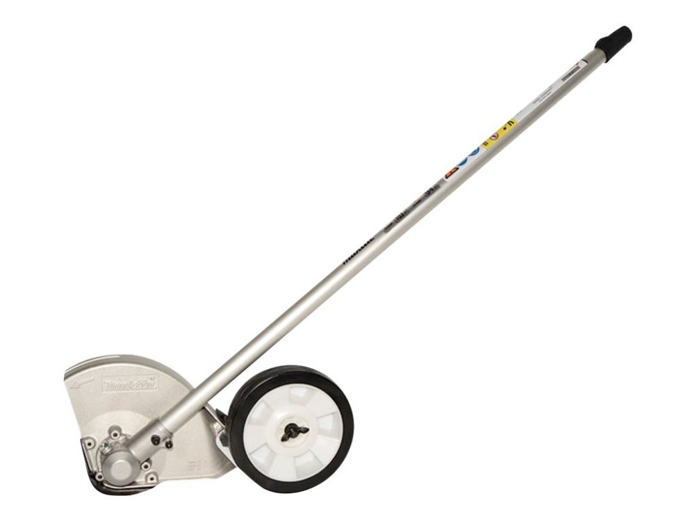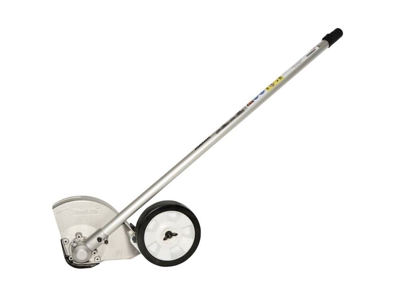 Makita is giving landscapers more options with the Edger Couple Shaft Attachment for MM4 4-Stroke Couple Shaft Power Heads. It has an 8" steel blade with a guide marking on the blade guard for cleaner, more precise cuts. It includes an adjustable wheel for quick and easy adjustment to the desired cutting depth. For added durability, the metal skid plate is engineered to protect the gear housing.