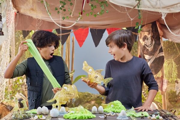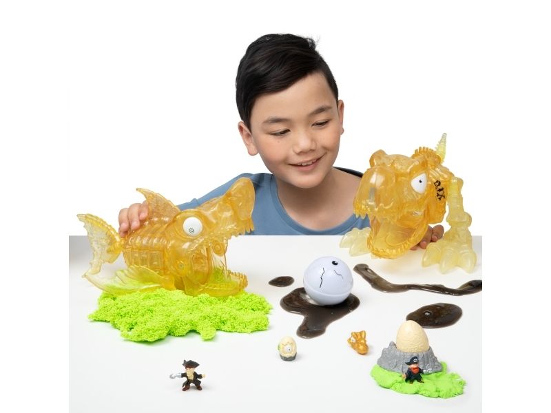 Över 30 överraskningar: Slime, brus och krossa dig igenom de över 30 Dino Island-överraskningarna och bygg den ultimata Dino SMASH-O-SAUR!
