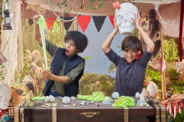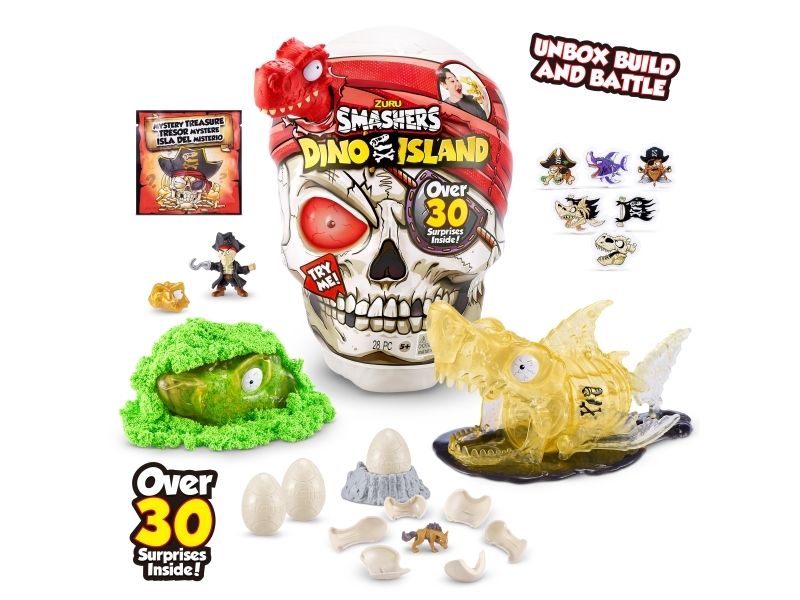 Miniägg och pirater: Upplev mini-ägg-överraskningar med över 20 karaktärer att krossa och samla! Djupt i Smashers-skatten kommer du att upptäcka den irriterande piratfiguren. Kommer denna pirat att ha en chans mot din Smashers Dino?