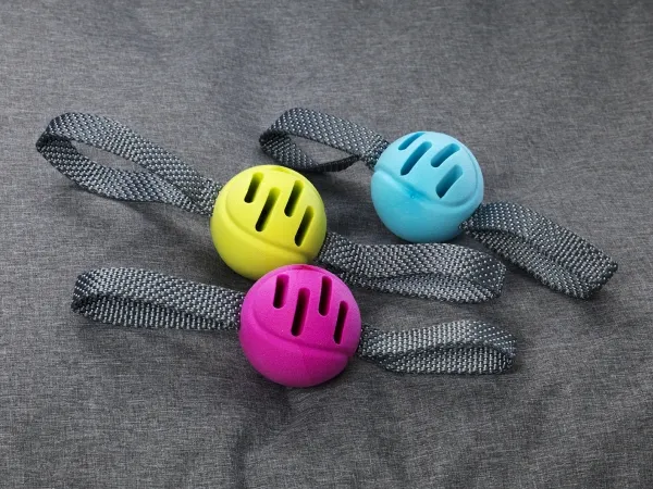 Boll av TPR med kasthandtag. Perfekt för apporteringslekar.