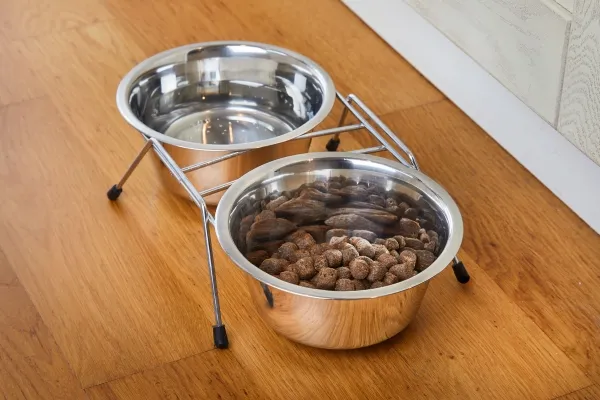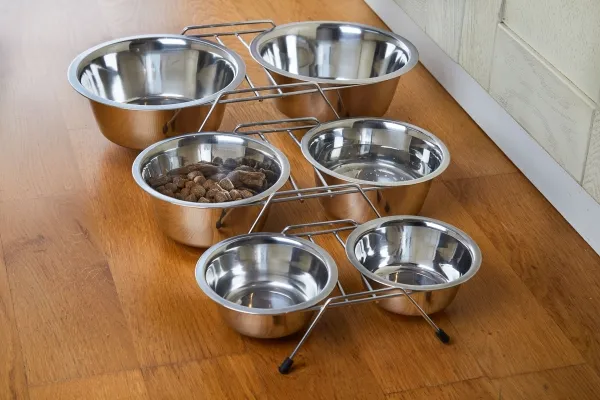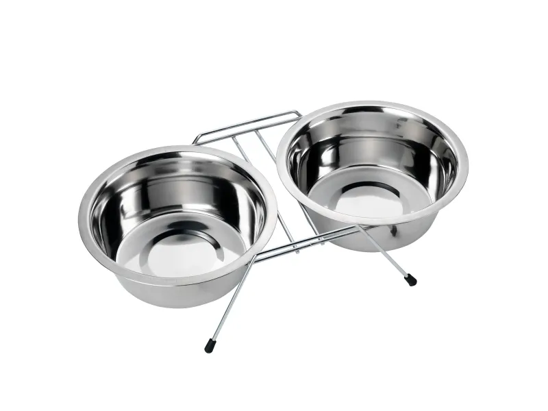 Klassisk matbar med två skålar i låg modell. Skålarna är lätta att rengöra och tål att diskas i diskmaskin.