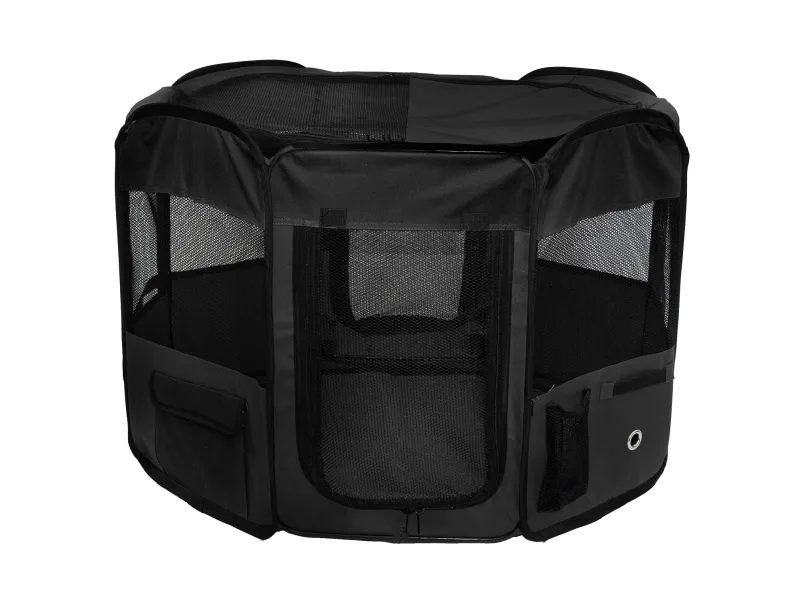 Praktisk, hopfällbar och slitstark hage i canvas. Hagen är 128cm mätt spets till spets och 119cm tvärs över bredsida till bredsida. Varje panel är ca 50cm bred, 82cm hög.