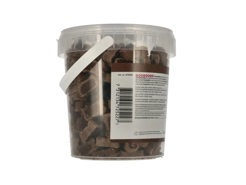 Mjuka belöningsbitar med en utsökt smak av kyckling, biff och lamm. Hundgodiset är perfekt för träning eller promenader! Utan tillsatt socker. Levereras i en praktisk lufttät hink. Ge den som en godbit utöver en balanserad kost.
