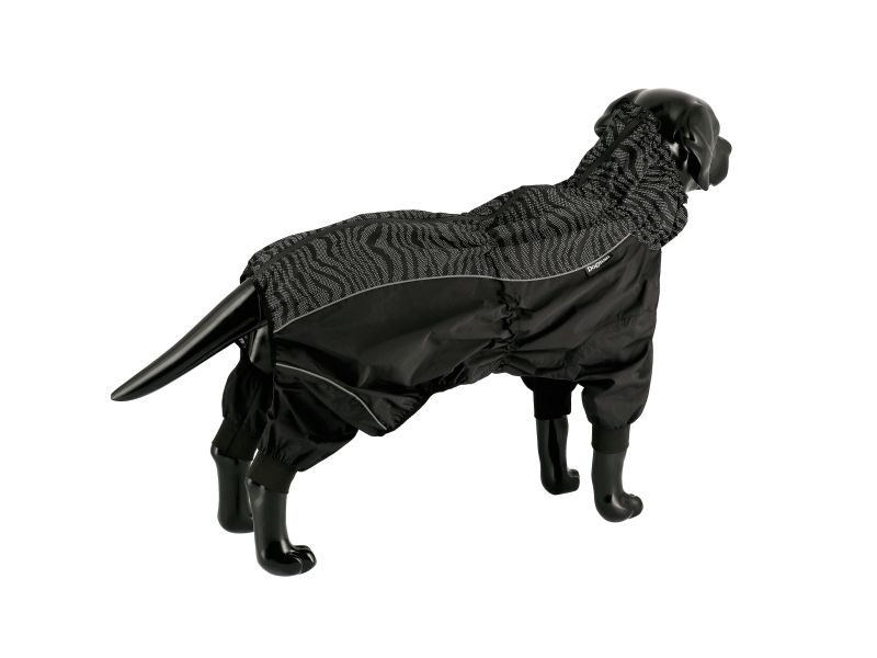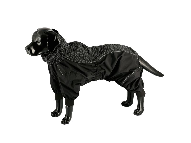 Vattentät (3000 mm) overall med tejpade sömmar. Overallen skyddar mot regn och vind. Reflexmönster längs hela ryggen. Justerbar halsöppning, krage och midja. Stängs med dragkedja längs ryggen.