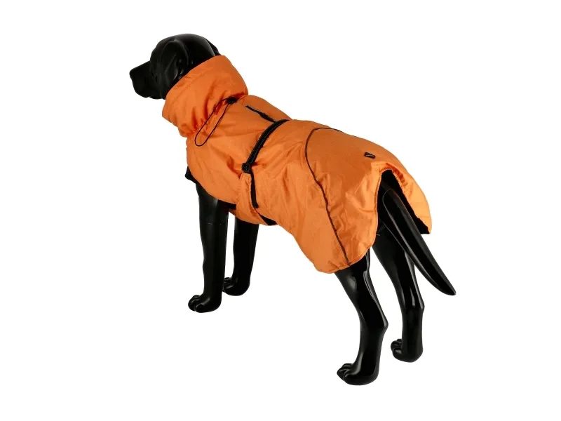 Vattentät (3000 mm) värmefilt med tejpade sömmar. Överdraget skyddar mot regn, vind och kyla. Reflexdetaljer, justerbar halsöppning, krage och dragsko samt öppning på ryggen för sele.