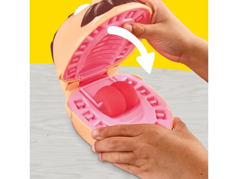 Borra och fyll patientens tänder innan han får tandvärk! Även om det kan vara lite läskigt att gå till tandläkaren kan barnen ta kontrollen och leka tandläkare med detta Play-Doh-lekset. De kan få patienten att sticka ut Play-Doh-tungan och sedan använda tandmallen för att skapa en hel rad Play-Doh-tänder på en gång. Börja borra och fylla med den handdrivna leksaksborren och sprutan. Kariesfärgad modellera har gröna fläckar, så att det ser ut som om patienten har något mellan tänderna, och guld- och silverfärgad Play-Doh-lera blir bra tandställningar och fyllningar. Med totalt 10 tandläkarverktyg och åtta giftfria Play-Doh-burkar är detta tandläkarlekset en rolig aktivitet eller present till barn från 3 år! Hasbro, Play-Doh och alla tillhörande egendomar är varumärken som tillhör Hasbro.