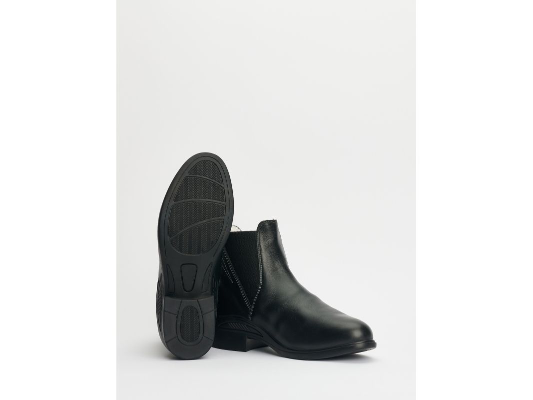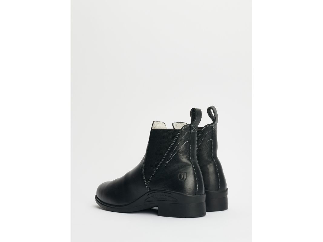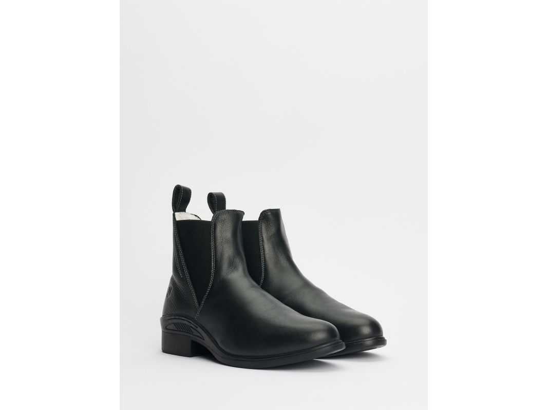 Jodhpur i läder med resår på båda sidorna för bra passform. Skinnklädd insida med foder i syntetpäls, innersula med extra hög komfort. Anti-slip gummisula för bättre fäste på hala underlag. Ljusa dekorsömmar.