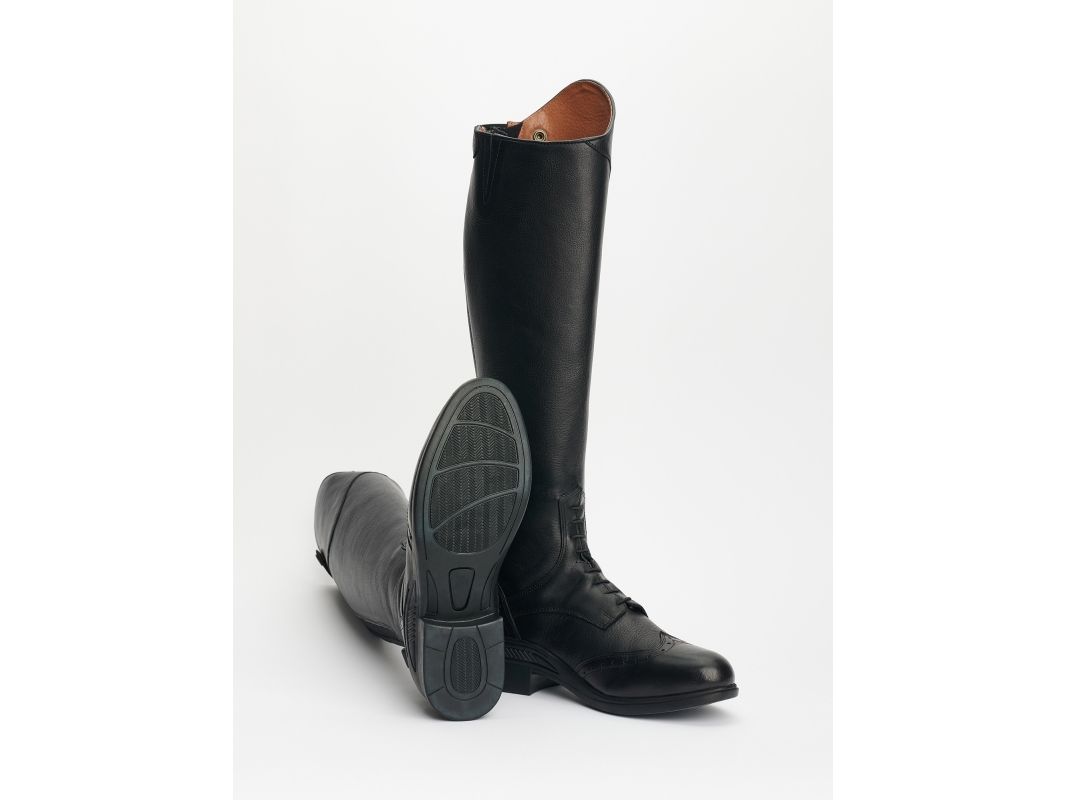 Ridstövel i läder. Läderfoder på insidan. Innersula med extra hög komfort. Elastisk lång dragkedja för bästa passform. Elastisk snörning framtill. Ljusa dekorativa sömmar
