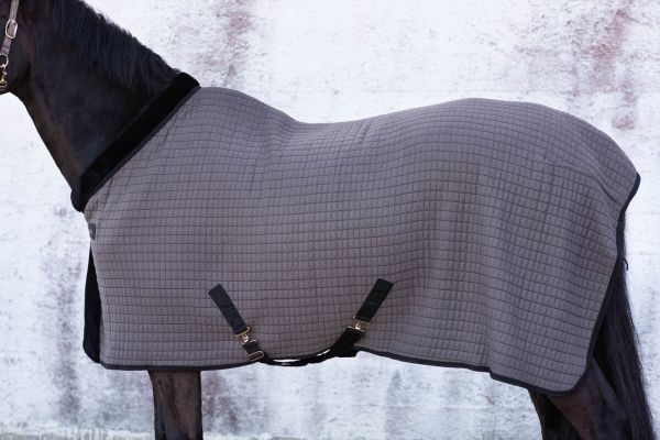 Quiltad filt med krage i mjuk minkfleece. Tre-lagers quiltat material, mellanlager med termo-torr isolering. Mycket goda fukttransporterande egenskaper håller hästen torr. Perfekt för transport, efter träning eller i stallet. Avtagbara korsband.