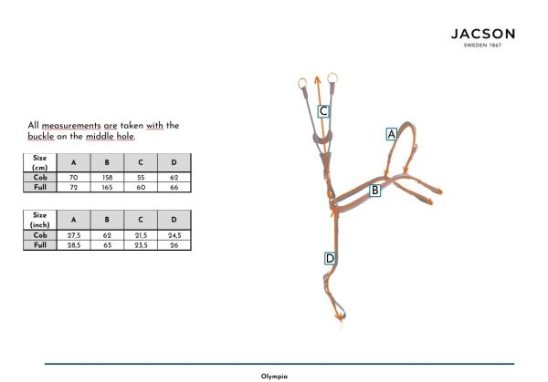 Följsam fodrad förbygel i mjukt oljat softyläder. Förbygeln har en avtagbar och justerbar elastisk martingal samt trepunktfäste som också är justerbar. Olympia Förbygel har pistolhake för fäste i sadelgjorden samt fina detaljer som ljusa dekorsömmar och mässingspännen - perfekt tillsammans med vårt träns London. Förutom att lädret är mjukt och följsamt så är det även vegetabiliskt garvat.