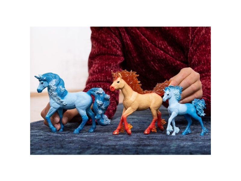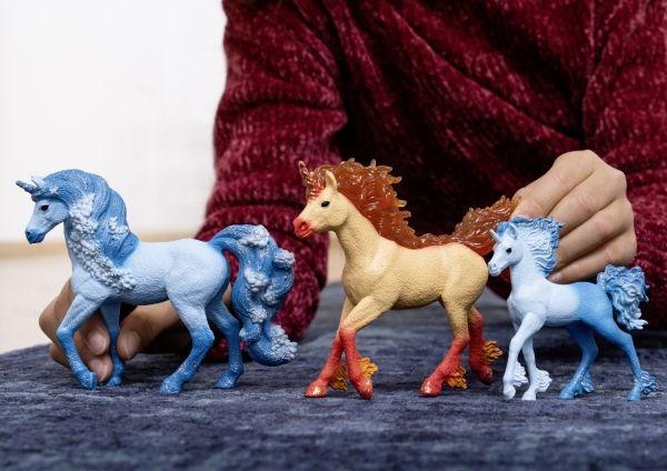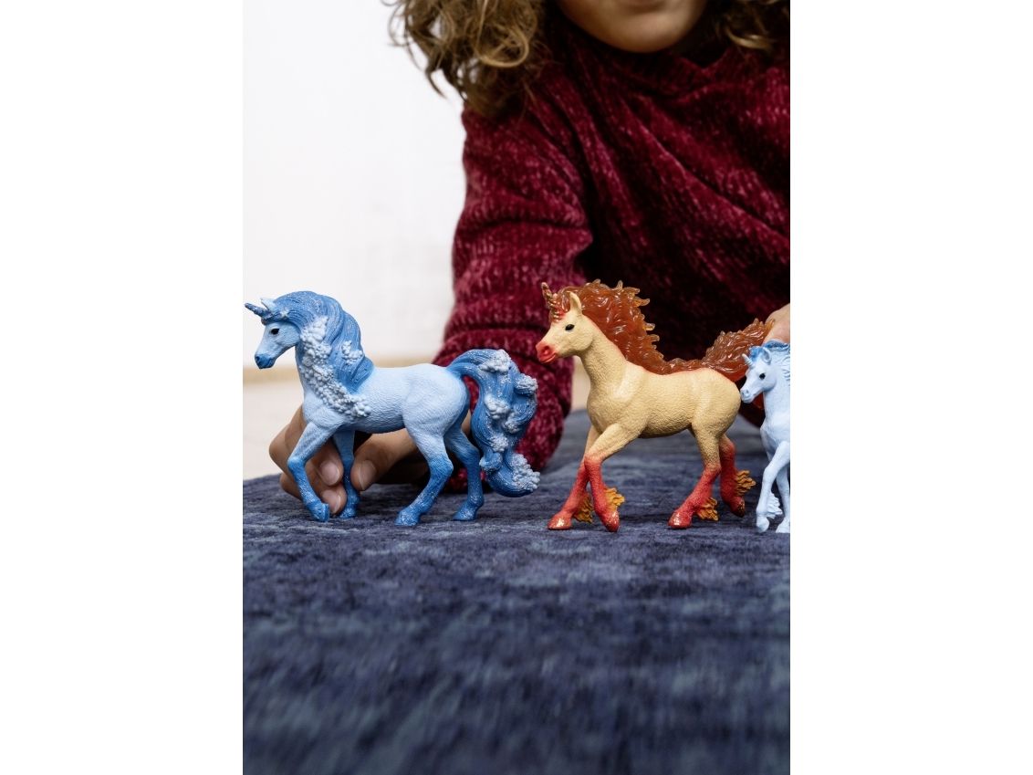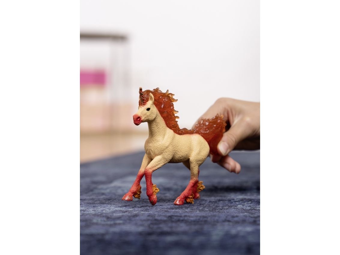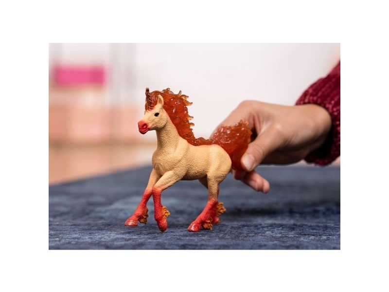 I en snabb galopp springer den stolta Elementa Eld-enhörningshingsten över de vidsträckta ängarna i BAYALA®. De röda och guldglittrande hovarna trummar mot golvet så högt att du kan höra det på långt håll. Den genomskinliga manen och hingstens långa rödaktiga svans fladdrar som lågor i den snabba takten i vinden, och inte ens en storm kan släcka den. Vart tror du att han ska så snabbt?