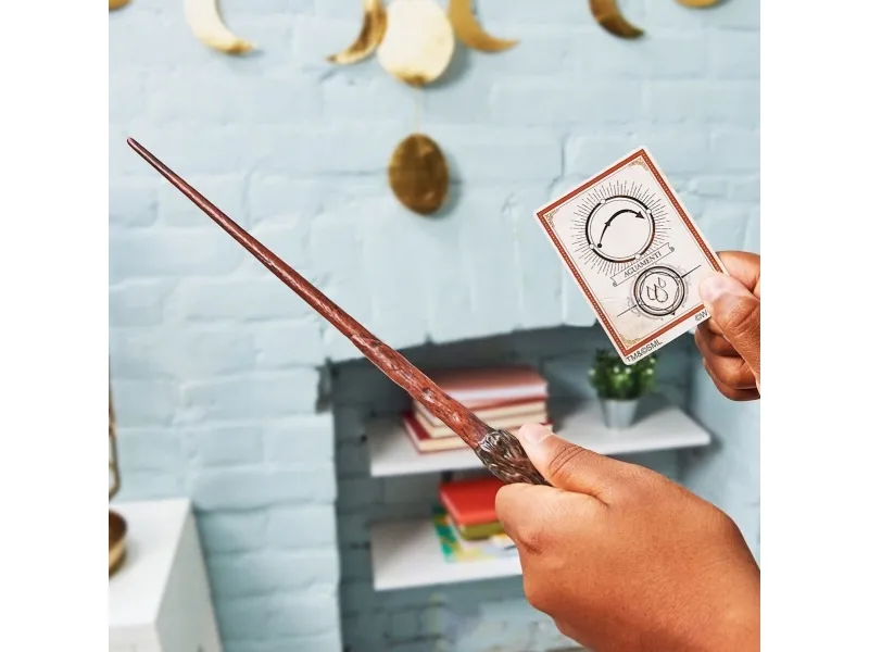Öva trollformler från Harry Potters Wizarding World med Spellbinding Wands! Med autentiska detaljer och viktbalanserad bas är denna 30,5 cm kopia av Harry Potters trollstav ett måste för Harry Potter-fans och samlare. Med trollstavens samlar-trollformelkort kan du lära dig Aguamenti-trollformeln! Följ diagrammet på kortet, öva rörelserna med trollstaven och låtsas slänga iväg din formel. Återskapa dina favoritscener från Harry Potter och låtsas trolla fram vatten från spetsen av din trollstav! Varje Spellbinding Wand har ett unikt kort som hjälper dig lära dig ikoniska trollformler och besvärjelser som Wingardium Leviosa, Incendio och fler! Spellbinding Wands är det perfekta sättet att inspirera din fantasi genom rolig och spännande låtsaslek. Samla Harry Potters, Hermione Grangers, Ron Weasleys, Luna Lovegoods och Albus Dumbledores Spellbinding Wands (var och en säljs separat) och utöka din Wizarding World-lek! Dessa förtrollande Harry Potter-samlarsaker är de perfekta presenterna till barn från 6 år och uppåt. Ta hem din egen kopia Harry Potters trollstav med Wizarding World Spellbinding Wand!