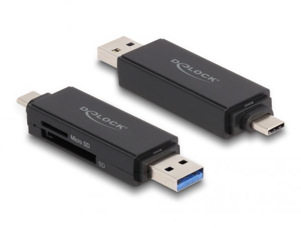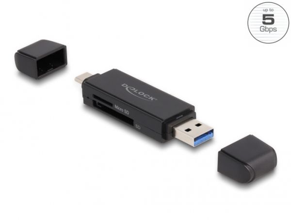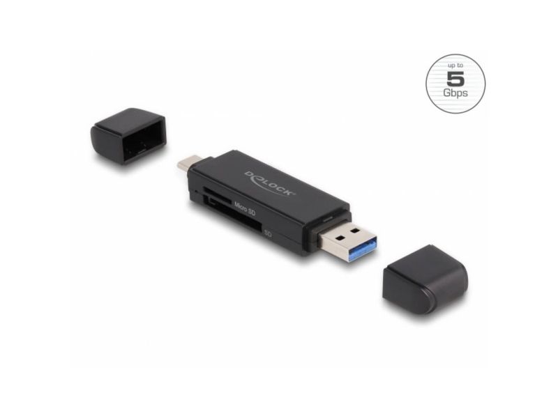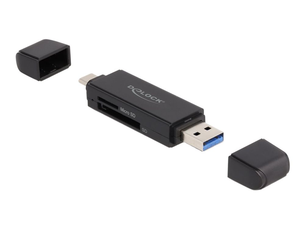 Delock - Kortläsare (SD, miniSD, RS-MMC, TransFlash, MMCmobile, microSD, MMCplus, MMCmicro, microSDHC, SDXC, microSDXC, MMC II, TurboSD, Turbo miniSD, MultiMediaCard Dual Voltage, RS-MMC Dual Voltage) - USB 3.2 Gen 1 / USB-C