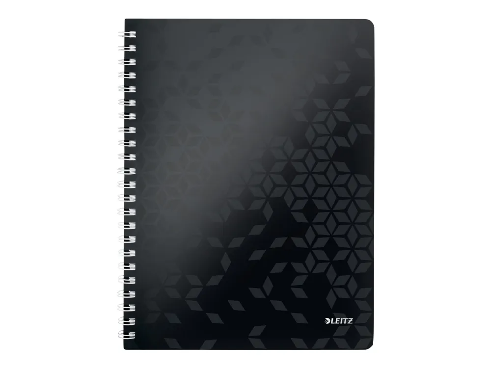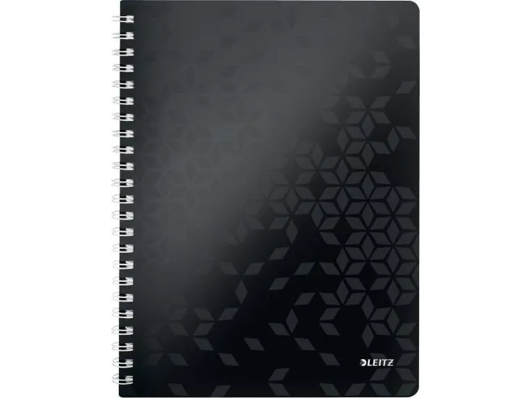 Leitz WOW - Anteckningsblock - trådbunden - A4 (210 x 297 mm) - 80 ark / 160 sidor - fyrkantig - 4 hål - svart - polypropylen (PP)
