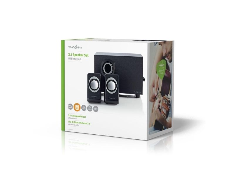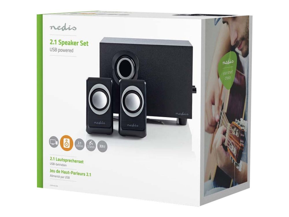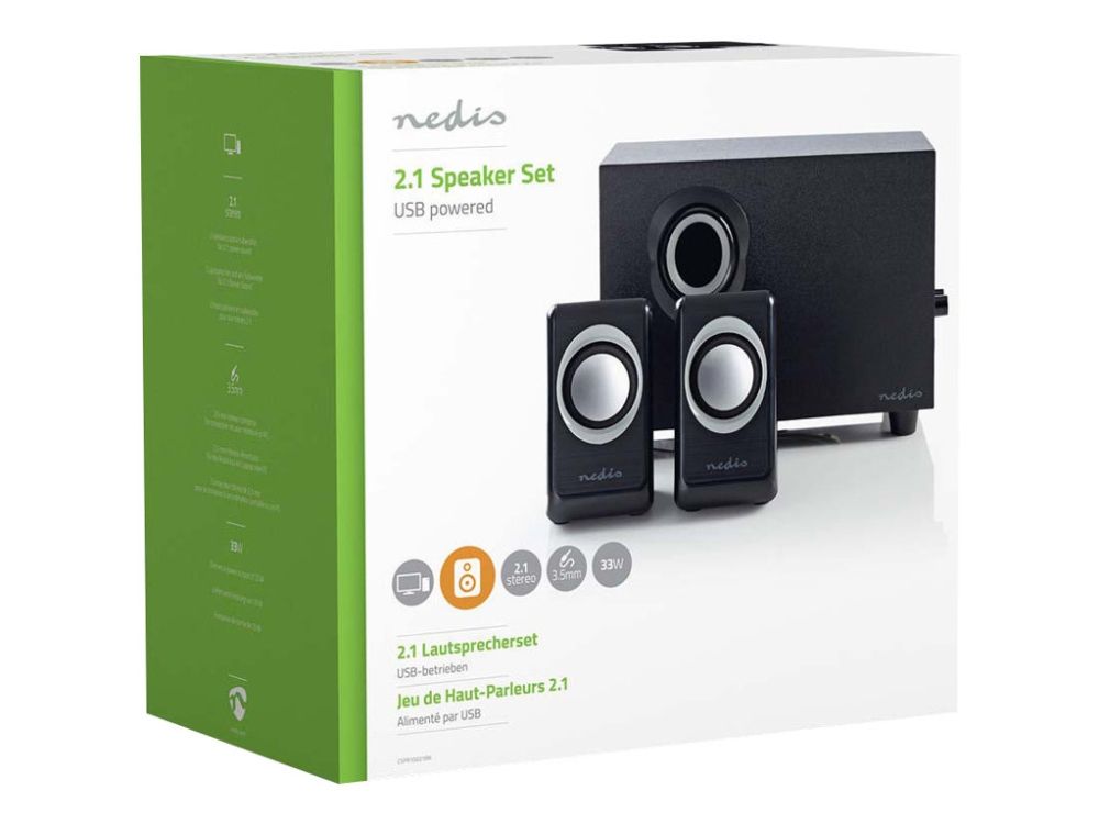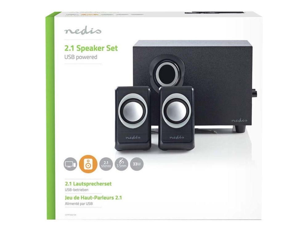 Transform the weak, tinny sound from your PC and smartphone into the textured, rich depths of 2.1 stereo with this Nedis USB-powered 33 W Speaker Set.
