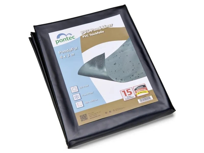 mLang levetid og fleksibel: Med dette damfolieskærme på 4 m x 3 m kan mindre havedamme eller bække gøres naturvenlige. Den består af sort PVC, er 0,5 mm stærk, uigennemsigtig og lysbestandig. Ved udlægning er den yderst fleksibel, kan den uden problemer limes fast og ved behov også repareres (svejsesøm). Den giver en høj modstandskraft over for forskellige vejrforhold og rodtryk, er kuldebestandig i henhold til din 53361 og er modstandsdygtigt over for rådning.