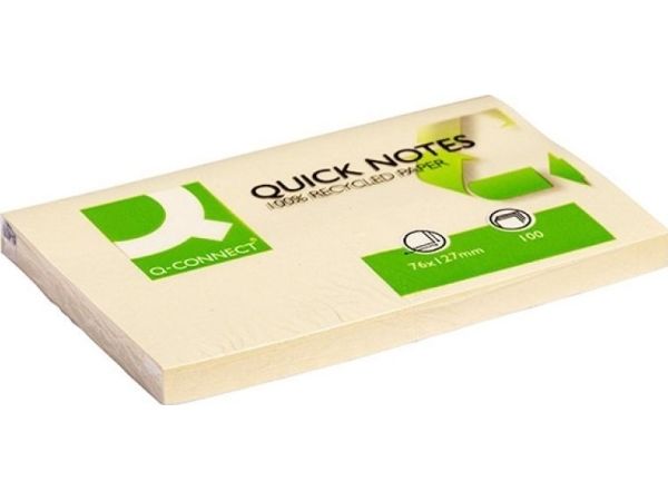 Q-Connect självhäftande block 100% återvunnet, 127x76 mm, 100 ark, gul