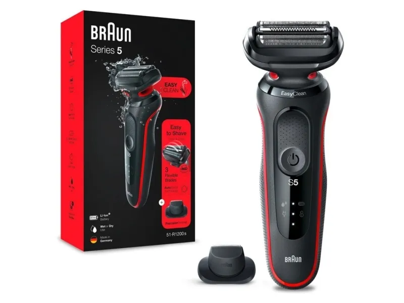 Braun Series 5 51-R1200S, Folierakapparat, Svart, Röd, AutoSense, Knappar, Batteri, Litium-Ion (Li-Ion)