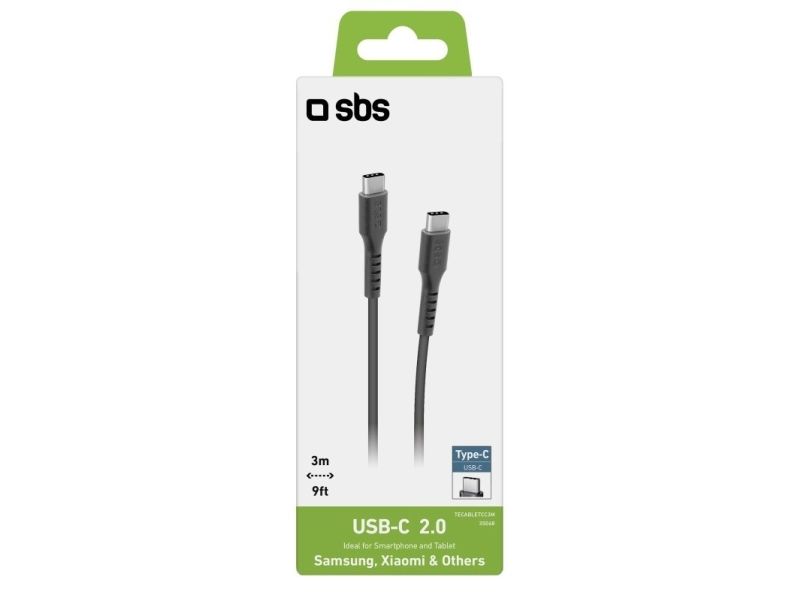 SBS TECABLETCC3M kabel, 3 m, USB C till USB C, USB 2.0, svart