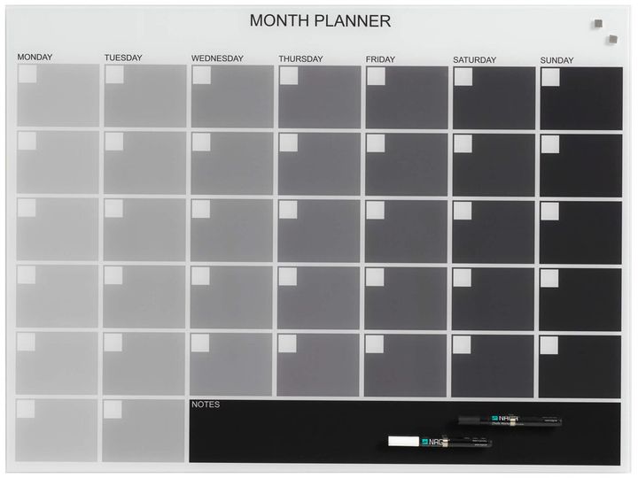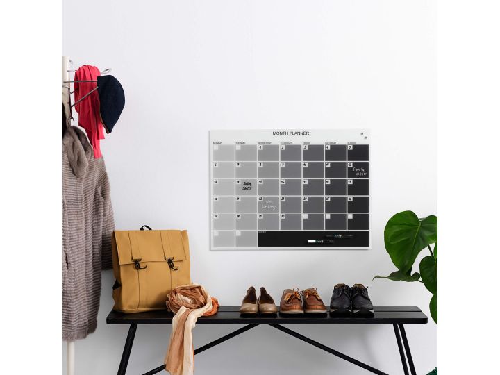 Veck-/månadsplanerare 80 x 60 cm i glas, grå, engelska
